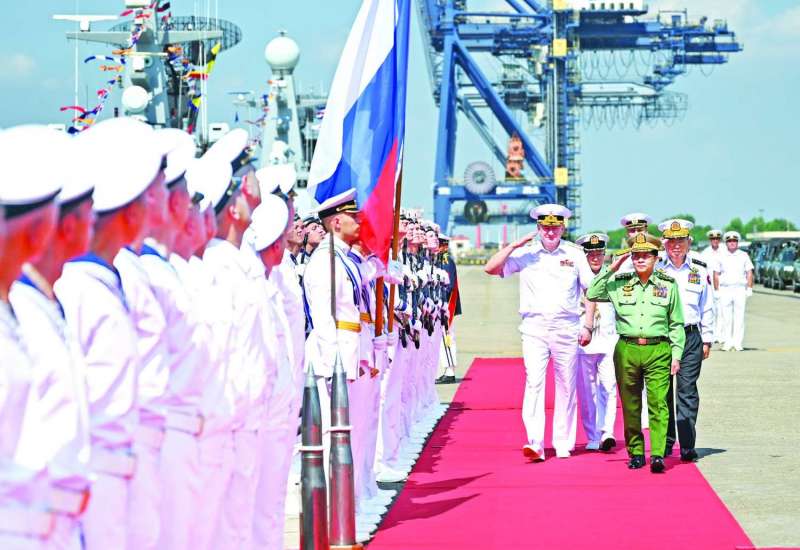 နိုင်ငံတော် စီမံအုပ်ချုပ်ရေးကောင်စီဥက္ကဋ္ဌ တပ်မတော်ကာကွယ်ရေးဦးစီးချုပ် ဗိုလ်ချုပ်မှူးကြီး မင်းအောင်လှိုင် အား ယနေ့နံနက်ပိုင်းတွင် ပထမအကြိမ် မြန်မာ- ရုရှား ရေကြောင်းလုံခြုံရေးဆိုင်ရာ လေ့ကျင့်ခန်း 1th MYANMAR-RUSSIA MARITIME SECURITY EXERCISE (MARUMEX) ပြုလုပ်ရန် ရောက်ရှိနေသည့် ရုရှားဖက်ဒရေးရှင်းနိုင်ငံ ရေတပ်ဦးစီးချုပ် Admiral Nikolai A.EVMENOV ဦးဆောင်သည့် ကိုယ်စားလှယ်အဖွဲ့က Russian Pacific Fleet စစ်ရေယာဉ်အုပ်စုမှ ဂုဏ်ပြုတပ်ဖွဲ့ဖြင့် ကြိုဆိုသည်။