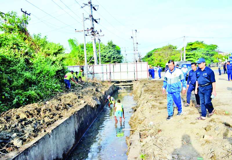 ရန်ကုန်မြို့တော် စည်ပင်သာယာရေးကော်မတီ ဒုတိယဥက္ကဋ္ဌ (ဒုတိယမြို့တော်ဝန်) ဦးညီညီသည် တာဝန်ရှိသူများနှင့်အတူ ယနေ့နံနက်ပိုင်းတွင် ရွှေတိဂုံစေတီတော်မြတ်ကြီး တောင်ဘက်မုခ်ရှိ တပ်မတော်ဓမ္မာရုံဝင်းအတွင်း စနေအထူးစုပေါင်း သန့်ရှင်းသာယာသပ်ရပ်ရေးလုပ်ငန်းများ ဆောင်ရွက်နေမှုကို ကြည့်ရှုစစ်ဆေးပြီး ဓမ္မာရုံဝင်းအတွင်း မြေထိန်းနံရံများရှိ ရေညှိများနှင့် တွယ်ကပ်ပင်များ၊ အဆောက်အအုံအမိုးပေါ်ရှိ အမှိုက်များနှင့် အဆောက်အအုံနှင့် ထိစပ်နေသည့်သစ်ကိုင်းများ ရှင်းလင်းဖယ်ရှားရန်မှာကြားပြီး လိုအပ်သည်များ ဖြည့်ဆည်းဆောင်ရွက်ပေးသည်။