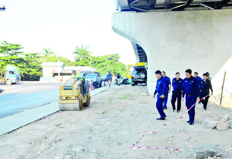 ရန်ကုန်တိုင်းဒေသကြီး စည်ပင်သာယာရေးဝန်ကြီး ရန်ကုန်မြို့တော်စည်ပင်သာယာရေးကော်မတီ ဥက္ကဋ္ဌ (မြို့တော်ဝန်)ဦးဗိုလ်ဌေးသည် သက်ဆိုင်ရာတာဝန်ရှိသူများနှင့်အတူ ယနေ့နံနက်ပိုင်းတွင် ရန်ကုန်မြို့တော်အတွင်း လမ်းများအဆင့်မြှင့်တင်နေမှုကို ကြည့်ရှုစစ်ဆေးသည်။