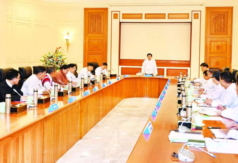 နိုင်ငံတော်စီမံအုပ်ချုပ်ရေးကောင်စီအစည်းအဝေး (၆/၂၀၂၃) ကို ယနေ့နံနက်ပိုင်းတွင် နေပြည်တော်ရှိ နိုင်ငံတော်စီမံအုပ်ချုပ်ရေးကောင်စီဥက္ကဋ္ဌရုံး အစည်းအဝေးခန်းမ၌ ကျင်းပပြုလုပ်ရာ နိုင်ငံတော်စီမံအုပ်ချုပ်ရေးကောင်စီဥက္ကဋ္ဌ နိုင်ငံတော်ဝန်ကြီးချုပ် ဗိုလ်ချုပ်မှူးကြီး မင်းအောင်လှိုင် တက်ရောက်အမှာစကားပြောကြားသည်။