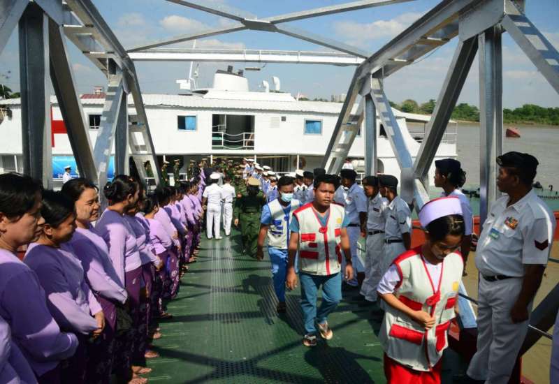 ဧရာဝတီတိုင်းဒေသကြီးနှင့် ပဲခူးတိုင်းဒေသကြီးအတွင်း ဧရာဝတီမြစ်ကြောင်းတစ်လျှောက်ရှိ မြစ်ဝကျွန်းပေါ်နေကျေးရွာများမှ ဒေသခံပြည်သူများအား နိုဝင်ဘာ (၁) ရက်မှ (၂၈) ရက်အထိ ကျန်းမာရေးစောင့်ရှောက်မှုလုပ်ငန်းများ သွားရောက်ဆောင်ရွက်ပေးခဲ့သည့် တပ်မတော်နယ်လှည့်အထူးကုဆေးအဖွဲ့နှင့် ကျန်းမာရေးဝန်ကြီးဌာန နယ်လှည့်အထူးကုဆေးအဖွဲ့တို့မှ ပါရဂူများ၊ ဆေးမှူးများနှင့် သူနာပြုများပါဝင်သော တပ်မတော်မြစ်တွင်းသွားဆေးရုံရေယာဉ် (ရွှေပုဇွန်) နှင့် မြစ်ရေယာဉ် (စကု) တို့သည် ယနေ့မွန်းလွဲပိုင်းတွင် ရန်ကုန်မြို့၊ အမှတ် (၄) ရေတပ်ဗောတံတားသို့ ပြန်လည်ရောက်ရှိလာရာ ဧရာဝတီရေတပ်စခန်းဌာနချုပ် ဌာနချုပ်မှူးနှင့် အရာရှိ၊ စစ်သည်၊ မိသားစုများက ကြိုဆိုနှုတ်ဆက်ကြသည်။