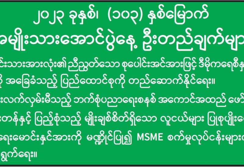 နိုင်ငံတော်စီမံအုပ်ချုပ်ရေးကောင်စီ ဦးတည်ချက်(၉) ရပ်၏ စီးပွားရေးကဏ္ဍ အချက် (၃) ချက်တွင် “တိုးတက်ကောင်းမွန်လာသည့် စီးပွားရေးမောင်းနှင်အားကို မဏ္ဍိုင်ပြု၍ MSME စက်မှုလုပ်ငန်းများကို အားပေးဆောင်ရွက်ကာ ပို့ကုန်ကဏ္ဍမြှင့်တင်ရေး”ဟု မူဝါဒချမှတ် ဆောင်ရွက်လျက်ရှိသည်။ နိုင်ငံတော်၏အားပေးမြှင့်တင်မှုဖြင့် ဆောင်ရွက်လျက်ရှိသည့် MSME လုပ်ငန်းများအနက် မင်းဘူးခရိုင် ငဖဲမြို့နယ် ကျောင်းတွင်းရပ်ကွက်ရှိ နတ်ရေကန် ကော်ဖီနှင့် လက်ဖက်ခြောက်လုပ်ငန်းရှင် ဒေါ်ဝေနှင်းဖြူနှင့် တွေ့ဆုံမေးမြန်းမှုကို ဖော်ပြလိုက်ပါသည်။