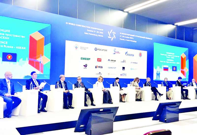 ရုရှားဖက်ဒရေးရှင်းနိုင်ငံ စိန့်ပီတာစဘတ်မြို့၌ ရောက်ရှိနေသော ဆောက်လုပ်ရေးဝန်ကြီးဌာန ပြည်ထောင်စုဝန်ကြီး ဦးမျိုးသန့် ဦးဆောင်သည့် မြန်မာကိုယ်စားလှယ်အဖွဲ့သည် အောက်တိုဘာ ၁၇ ရက် ညနေပိုင်းတွင် ExpoForum Exhibition and Convention Center ၌ ကျင်းပသည့် “တတိယ အကြိမ် World Construction Championship” ဖွင့်ပွဲအခမ်းအနားသို့ နိုင်ငံတကာနှင့် အာဆီယံနိုင်ငံများမှ ဝန်ကြီးများ၊ တာဝန်ရှိသူများနှင့်အတူ တက်ရောက်ခဲ့သည်။