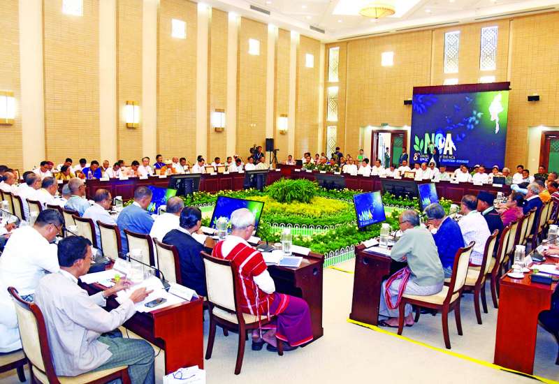 တစ်နိုင်ငံလုံးပစ်ခတ်တိုက်ခိုက်မှုရပ်စဲရေးသဘောတူစာချုပ် (NCA) (၈) နှစ်မြောက် နှစ်ပတ်လည်နေ့အထိမ်းအမှတ် အလုပ်ရုံဆွေးနွေးပွဲကို ယနေ့မွန်းလွဲပိုင်းတွင် နေပြည်တော်ရှိ မြန်မာအပြည်ပြည်ဆိုင်ရာကွန်ဗင်းရှင်းဗဟိုဌာန (၂) ၌ ကျင်းပပြုလုပ်သည်။