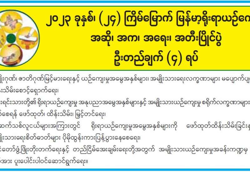 တစ်နိုင်ငံလုံးအတိုင်းအတာနှင့် တိရစ္ဆာန်ကောင်ရေ စာရင်းကောက်ယူခြင်းကို ငါးနှစ်လျှင်တစ်ကြိမ် ကောက်ယူရန် ရည်မှန်းချက်နှင့်အညီ ၂၀၂၃ ခုနှစ် နိုဝင်ဘာလတွင် တိုင်းဒေသကြီး/ပြည်နယ် ၁၃ ခု၊ မြို့နယ် ၂၁၅ မြို့နယ်တွင် ဆောင်ရွက်သွားမည်ဖြစ်ကြောင်း၊ စိုက်ပျိုးရေး၊ မွေးမြူရေးနှင့် ဆည်မြောင်းဝန်ကြီးဌာနရှိ နိုင်ငံတော်အဆင့် တိရစ္ဆာန်ကောင်ရေ စာရင်းကောက်ယူရေး ဗဟိုကော်မတီ အစည်းအဝေးခန်းမ၌ ယနေ့ကျင်းပသည့် အစည်းအဝေးတွင် ဗဟိုကော်မတီ ဥက္ကဋ္ဌ စိုက်ပျိုးရေး၊ မွေးမြူရေးနှင့် ဆည်မြောင်းဝန်ကြီးဌာန ဒုတိယဝန်ကြီး ဒေါက်တာ အောင်ကြီးက ပြောကြားသည်။