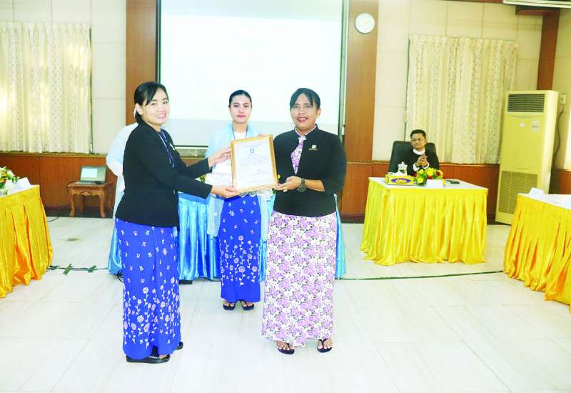 အလယ်အလတ်အဆင့် ဥပဒေအရာရှိများ မွမ်းမံသင်တန်းအမှတ်စဉ် (၁/၂၀၂၃) သင်တန်းဆင်းပွဲအခမ်း အနားကို ယနေ့ မွန်းလွဲ ၂ နာရီက ဥပဒေရေးရာဝန်ကြီးဌာနရှိ အစည်းအဝေးခန်းမ၌ ကျင်းပရာ ပြည်ထောင်စုဝန်ကြီးနှင့် ပြည်ထောင်စုရှေ့နေချုပ် ဒေါက်တာသီတာဦး တက်ရောက်၍ သင်တန်းဆင်း အမှာစကားပြောကြားသည်။
