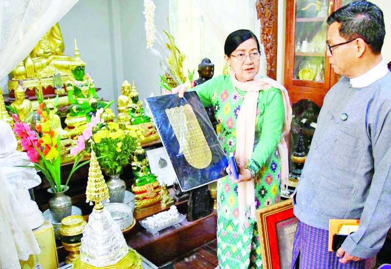 သာသနာရေးနှင့်ယဉ်ကျေးမှုဝန်ကြီးဌာန ဒုတိယဝန်ကြီးဒေါ်နုမြဇံသည် တာဝန်ရှိသူများနှင့်အတူ ယမန်နေ့နံနက်ပိုင်းက မန္တလေးတိုင်းဒေသကြီး နန်းမြို့ရိုးထိန်းသိမ်းရေးလုပ်ငန်း ဆောင်ရွက်နေမှုများကို ကြည့်ရှုစစ်ဆေးသည်။