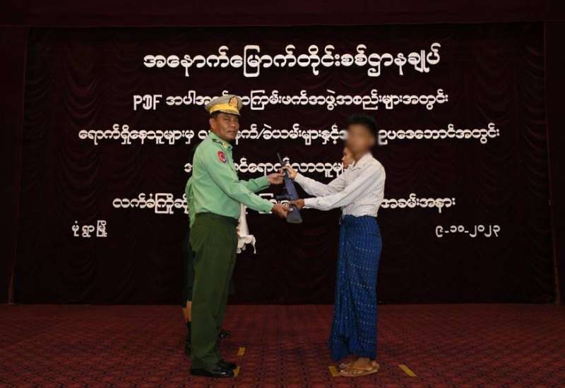 နိုင်ငံတော်စီမံအုပ်ချုပ်ရေးကောင်စီသည် PDF အပါအဝင် အဖွဲ့အစည်းအမျိုးမျိုးအမည်ခံ၍ လက်နက်ကိုင်ဆန့်ကျင်လျက်ရှိသည့် အဖွဲ့အစည်းများအတွင်း ရောက်ရှိနေသူများအား ဥပဒေဘောင်အတွင်းသို့ ပြန်လည်ဝင်ရောက်ရန်ဖိတ်ခေါ်၍ ဥပဒေဘောင်အတွင်းသို့ ဝင်ရောက်လာသူများကို လိုအပ်သည့်ကူညီပံ့ပိုးမှုများဆောင်ရွက် ပေးသွားမည်ဖြစ်ကြောင်းနှင့် လက်နက်/ခဲယမ်းများပါရှိမှုအတွက် ဆုကြေးငွေများ ပေးအပ်သွားမည်ဖြစ်ကြောင်း ထုတ်ပြန်ထားရှိပြီးဖြစ်ရာယနေ့တွင် ပြစ်မှုကျူးလွန်ခြင်းမရှိသော PDF အဖွဲ့မှ ဥပဒေဘောင်အတွင်းသို့ ပြန်လည်ဝင်ရောက်လာသူများအား မိဘအုပ်ထိန်းသူများထံ ပြန်လည်လွှဲပြောင်းပေးအပ်ခြင်းကို အနောက်မြောက်တိုင်းစစ်ဌာနချုပ်နှင့် စစ်ကိုင်းတိုင်းဒေသကြီး၊ တမူးမြို့နယ်၊ ကလေးမြို့နယ်နှင့် မုံရွာမြို့နယ်တို့ရှိ တပ်နယ်ခန်းမများ၌ အသီးသီးပြုလုပ်ကြရာ တိုင်းဒေသကြီးဝန်ကြီးချုပ် ဦးမြတ်ကျော်၊ တိုင်းမှူးဗိုလ်ချုပ်သန်းထိုက်နှင့် တာဝန်ရှိသူများ၊ ဌာနဆိုင်ရာ တာဝန်ရှိသူများ၊ ဥပဒေဘောင်အတွင်း ပြန်လည်ဝင်ရောက်လာသူများနှင့် ၎င်းတို့၏ မိဘအုပ်ထိန်းသူများ တက်ရောက်ကြသည်။