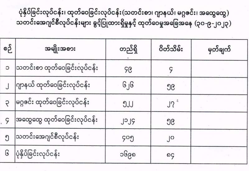 ၁။ သယံဇာတနှင့်သဘာဝပတ်ဝန်းကျင်ထိန်းသိမ်းရေးဝန်ကြီးဌာန၏ ကြီးကြပ်မှုဖြင့် မြန်မာ့ကျောက်မျက်ရတနာပြပွဲဗဟိုကော်မတီသည် ၂၀၂၃ ခုနှစ်၊ နှစ်လယ်မြန်မာ့ကျောက်မျက်ရတနာပြပွဲကို အောက်တိုဘာလ (၂၀)ရက်မှ (၂၈)ရက်အထိ နေပြည်တော်၊ မဏိရတနာကျောက်စိမ်းခန်းမတွင် ကျင်းပပြုလုပ်မည်ဖြစ်ပြီး ရတနာပြပွဲတွင် မြန်မာနိုင်ငံမှထွက်ရှိသော ပုလဲ၊ ကျောက်မျက်နှင့် ကျောက်စိမ်းအတွဲများကို တင်ပြရောင်းချသွားမည် ဖြစ်ပါသည်။