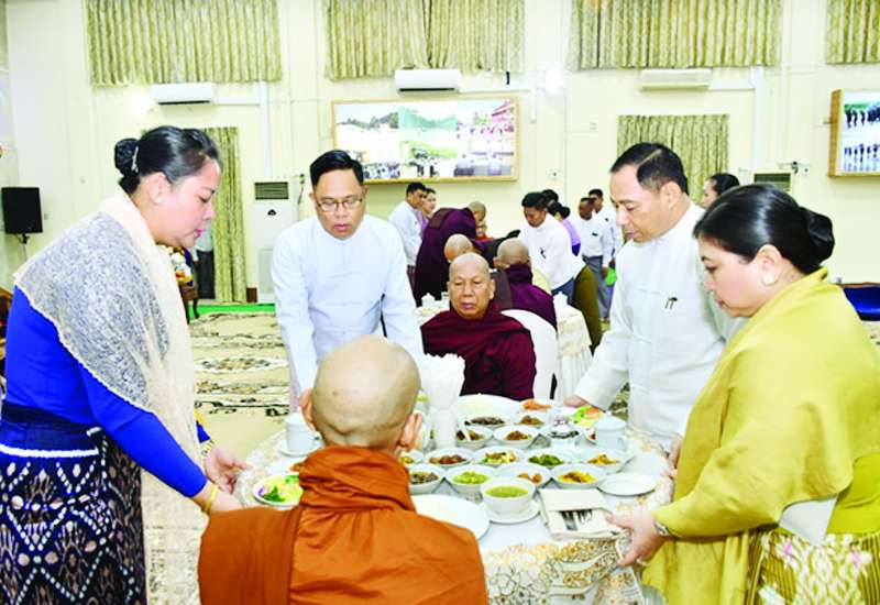 (၅၉) နှစ်မြောက် မြန်မာနိုင်ငံရဲတပ်ဖွဲ့နေ့ အထိမ်းအမှတ် ဆရာတော်သံဃာတော်များအား အရုဏ်ဆွမ်းဆက်ကပ်လှူဒါန်းခြင်းအခမ်းအနားကို ယနေ့နံနက်ပိုင်းတွင် မြန်မာနိုင်ငံရဲတပ်ဖွဲ့ဌာနချုပ် အရိန္ဒမာခန်းမ၌ ကျင်းပသည်။