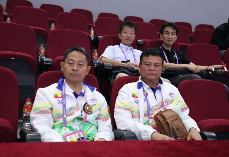 တရုတ်ပြည်သူ့သမ္မတနိုင်ငံက အိမ်ရှင်အဖြစ်လက်ခံကျင်းပသည့် (၁၉) ကြိမ်မြောက် အာရှအားကစားပြိုင်ပွဲများကို မြို့အသီးသီးရှိ အားကစားကွင်း/အားကစားရုံများ၌ ဆက်လက်ကျင်းပလျက်ရှိရာ မြန်မာနိုင်ငံအိုလံပစ်ကော်မတီဥက္ကဋ္ဌ၊ အားကစားနှင့်လူငယ်ရေးရာဝန်ကြီးဌာန ပြည်ထောင်စုဝန်ကြီး ဦးမင်းသိန်းဇံနှင့် အုပ်ချုပ်မှုအဖွဲ့တာဝန်ရှိသူများသည် ယနေ့ဒေသစံတော်ချိန် နံနက် (၁၀) နာရီတွင် ဟန်ကျိုးမြို့ရှိ Xiaoshan Guali Sports Center အားကစားရုံ၌ကျင်းပသည့် ဝူရှူးအားကစားနည်းပြိုင်ပွဲတွင် မြန်မာနိုင်ငံမှ မအေးသစ္စာမြင့်က နန်းချွမ် (ခေါ်) တောင်ပိုင်းလက်သိုင်းပြိုင်ပွဲနှင့် နန်းသောင်း (ခေါ်) တောင်ပိုင်းဓါးသိုင်းပြိုင်ပွဲတို့တွင် ဝင်ရောက်ယှဉ်ပြိုင်နေမှုကို သွားရောက်ကြည့်ရှုအားပေးသည်။