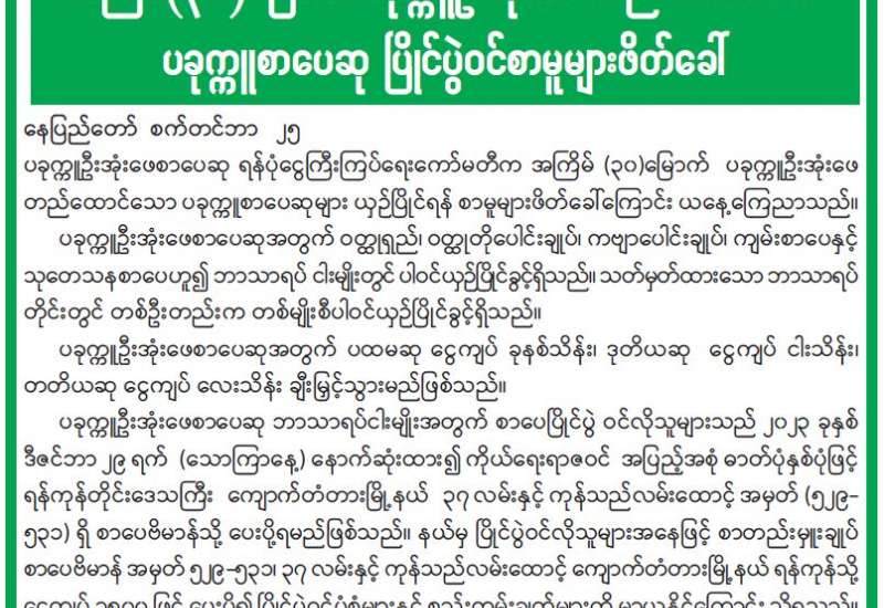 မျက်မှောက်ကာလတွင် ဖြစ်ပွားလျက်ရှိသော လုံခြုံရေး၊ တရားဥပဒေစိုးမိုးရေးနှင့် အကြမ်းဖက်မှုတားဆီးရေးဆိုင်ရာ ကိစ္စရပ်များနှင့် ပတ်သက်၍ ပရိသတ်များ၏ ရင်တွင်းခံစားချက် စကားသံများအား သဇင် FM ၏ “ပြည်သူ့ကြားက ပြည်သူ့စကား” အစီအစဉ်မှ “ကုန်စည်ပို့ဆောင်ရေးလမ်းကြောင်းများ ပိတ်ဆို့ဖျက်ဆီး၍ ကုန်ပစ္စည်းရှားပါးပြတ်လပ်ကာ ပြည်သူတွေစားဝတ်နေရေးခက်ခဲအောင် ပြုလုပ်နေတဲ့ NUG နဲ့ PDF အကြမ်းဖက်သမားများ” ခေါင်းစဉ်ဖြင့် စက်တင်ဘာ ၂၇ ရက် မွန်းလွဲ ၁ နာရီတွင် ထုတ်လွှင့်တင်ဆက်ပေးသွားမည်ဖြစ်သည်။