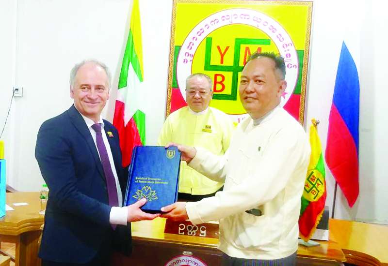 လျှပ်စစ်စွမ်းအားဝန်ကြီးဌာန ပြည်ထောင်စုဝန်ကြီး ဦးဉာဏ်ထွန်းသည် ရုရှား-မြန်မာ ချစ်ကြည်ရေးနှင့် ပူးပေါင်းဆောင်ရွက်ရေးအသင်းဥက္ကဋ္ဌ မစ္စတာအန်နာသိုလီ ဘူးလော့ချ်နိကော့ ဦးဆောင်သည့်ကိုယ်စားလှယ်အဖွဲ့ကို ယနေ့နံနက် ၁၀ နာရီတွင် နေပြည်တော်ရှိ လျှပ်စစ်စွမ်းအားဝန်ကြီးဌာန အစည်းအဝေးခန်းမ၌ လက်ခံတွေ့ဆုံသည်။