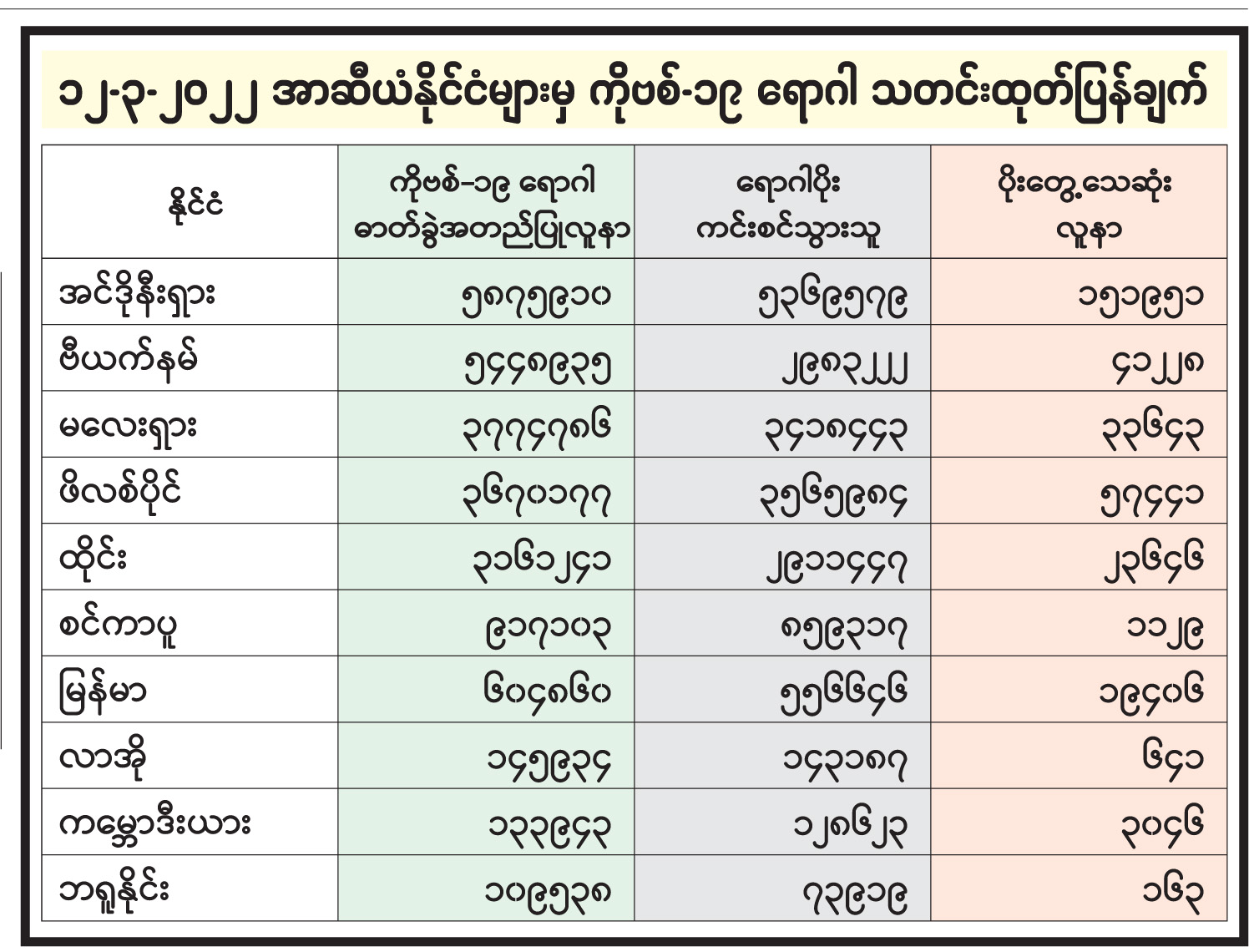၁၂-၃-၂၀၂၂ အာဆီယံနိုင်ငံများမှ ကိုဗစ်-၁၉ ရောဂါ သတင်းထုတ်ပြန်ချက်