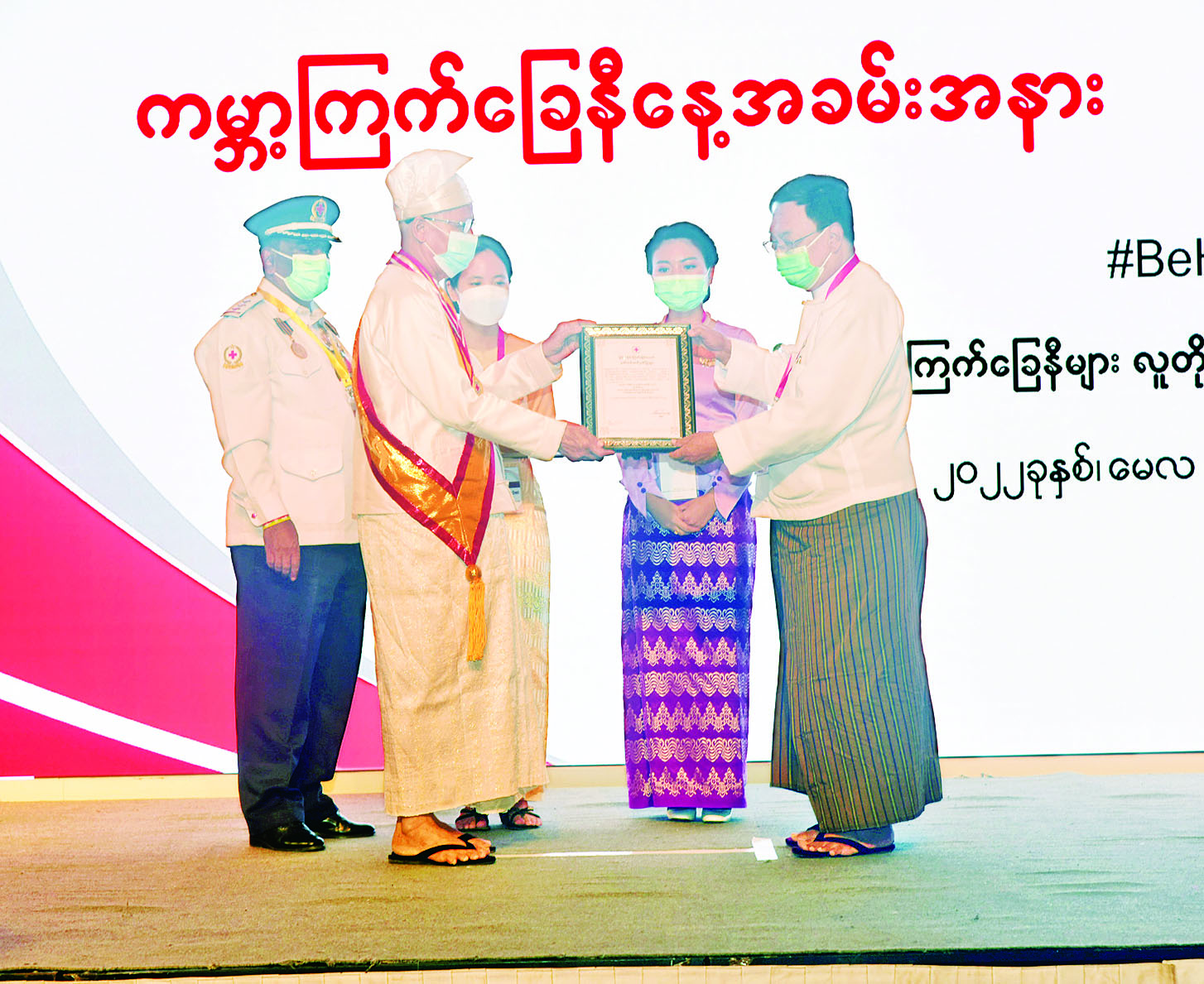 ယင်းနောက် မြန်မာနိုင်ငံ ကြက်ခြေနီသူနာပြု တပ်ဖွဲ့တွင် အသက် ၆၅နှစ်ပြည့်သည်အထိ တာဝန် ထမ်းဆောင်ခဲ့သော ကြက်ခြေနီတပ်ဖွဲ့ဝင်များကို ဂုဏ်ပြုချီးမြှင့်ပြီး မြန်မာနိုင်ငံ ကြက်ခြေနီအသင်း စေတနာလုပ်အားရှင်များ၏ စကားသံမှတ်တမ်း ဗီဒီယိုကို ပြသသည်။