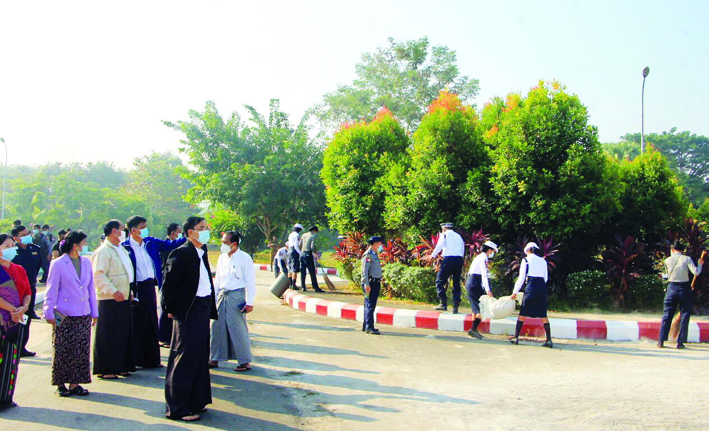အဆိုပါသန့်ရှင်းရေး ပြုလုပ် ရာသို့ ပဲခူးတိုင်းဒေသကြီး ဝန်ကြီး ချုပ် ဦးမျိုးဆွေဝင်းနှင့် တိုင်းဒေသ ကြီးဝန်ကြီးများ၊ အတွင်းရေးမှူး နှင့် ဌာနဆိုင်ရာတာဝန်ရှိသူများက တပ်မတော်၊ မြန်မာနိုင်ငံ ရဲတပ်ဖွဲ့၊ မီးသတ်တပ်ဖွဲ့နှင့် ဌာနဆိုင်ရာ ဝန်ထမ်းများ စုပေါင်းသန့်ရှင်းရေး ပြုလုပ်နေမှုအား လိုက်လံ ကြည့်ရှုအားပေးခဲ့သည်။