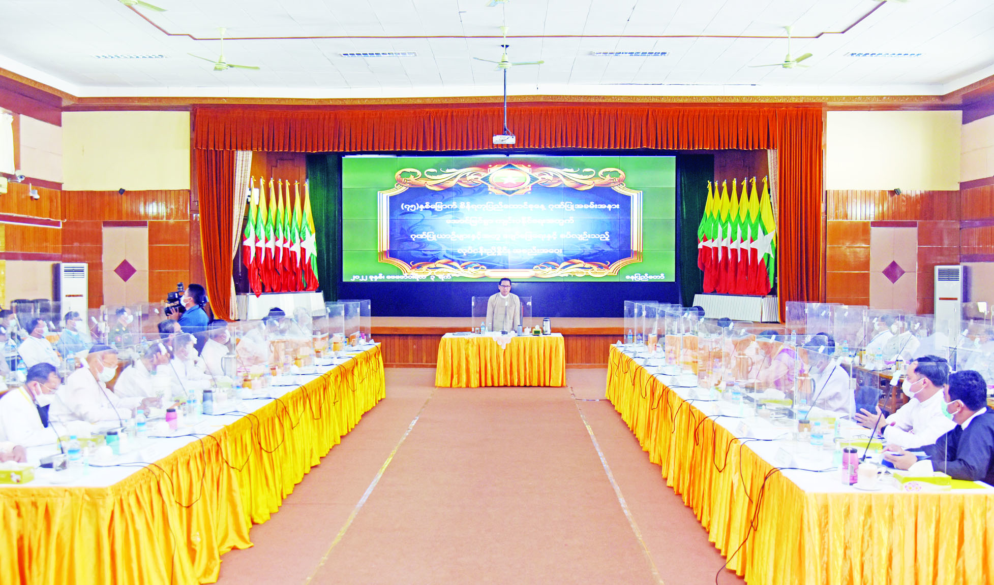 ထို့နောက် ဂုဏ်ပြုအခမ်းအနားကျင်းပရေးကော်မတီ အတွင်း ရေးမှူး ဒုတိယဝန်ကြီး ဦးရဲတင့်၊ သာသနာရေးနှင့် ယဉ်ကျေးမှုဝန်ကြီးဌာန ဒုတိယဝန်ကြီး ဦးထွန်းအုံ၊ တိုင်းရင်းသားလူမျိုးများရေးရာဝန်ကြီးဌာန ဒုတိယဝန်ကြီး ဦးဇော်အေးမောင်၊ တိုင်းဒေသကြီး / ပြည်နယ်ဝန်ကြီး များ၊ တက်ရောက်လာသူများက ဂုဏ်ပြုယာဉ်များ နေရာယူခြင်း၊ ချီတက်မောင်းနှင်ခြင်းနှင့် ယာယီရပ်နားနိုင်ရေး ဆောင်ရွက်ထားရှိမှု၊ ဂုဏ်ပြုယာဉ်များနှင့်အတူ တိုင်းရင်းသားများ၏ ရိုးရာယဉ်ကျေးမှုအက များနှင့် အနုပညာရှင်တို့မှ ဖျော်ဖြေတင်ဆက်မှု၊ ဇာတ်တိုက်လေ့ကျင့်နေမှု နှင့် ဂုဏ်ပြုညစာစားပွဲတွင် သီဆိုကပြဖျော်ဖြေမည့် အစီအစဉ်များကို ဆွေးနွေးတင်ပြကြသည်။