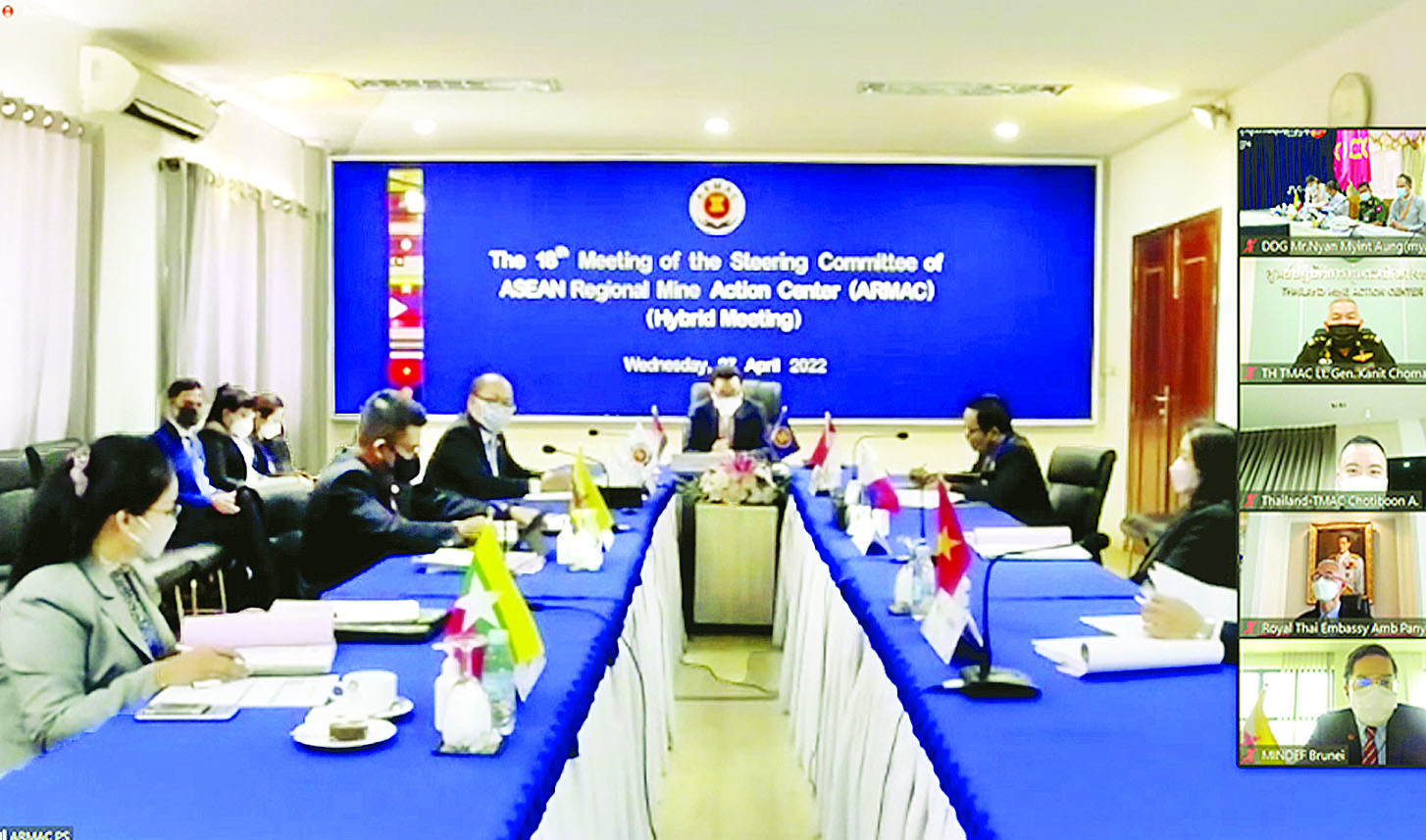 (၁၈) ကြိမ်မြောက် ဦးဆောင် လမ်းညွှန်မှု ကော်မတီ (18th Meeting of the Steering Committee) အစည်းအဝေးကို ယနေ့ နံနက် ၈ နာရီခွဲက ကမ္ဘော ဒီးယားနိုင်ငံ ဖနောင်ပင်မြို့ရှိ အာဆီယံဒေသတွင်း မိုင်းရှင်းလင်း ရေးဗဟိုဌာန (ARMAC) ရုံးချုပ်၌ ဗီဒီယိုကွန်ဖရင့်စနစ်ဖြင့် ARMAC ၏ အလှည့်ကျဥက္ကဋ္ဌ ကမ္ဘော ဒီးယားနိုင်ငံက တာဝန်ယူကျင်းပ သည်။