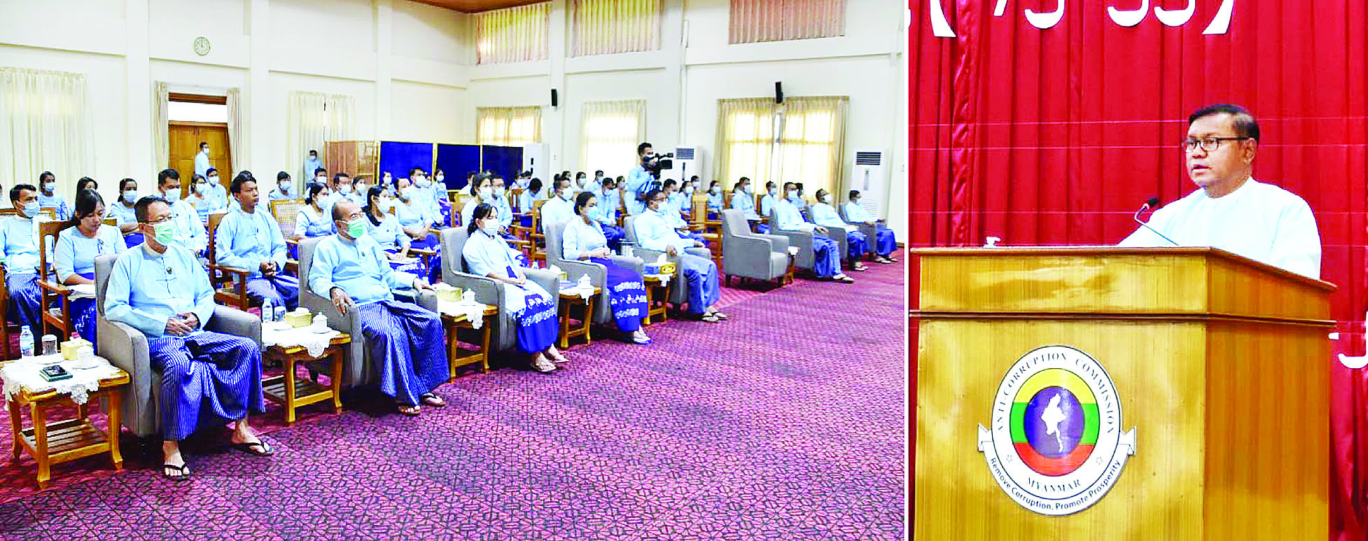 အဂတိလိုက်စားမှု  တိုက်ဖျက်ရေး ကော်မရှင်ရုံး    ကွန်ပျူတာအခြေခံ သင်တန်း   (၁/၂၀၂၂)  သင်တန်း ဆင်းပွဲအခမ်းအနားကို ယနေ့နံနက်  ၁၀  နာရီတွင်     အဂတိလိုက်စားမှု       တိုက်ဖျက်ရေး      ကော်မရှင်ရုံး      စုပေါင်းခန်းမ၌  ကိုဗစ်-၁၉ ရောဂါ ဆိုင်ရာ   စည်းကမ်းသတ်မှတ်ချက် များနှင့်အညီ ကျင်းပသည်။