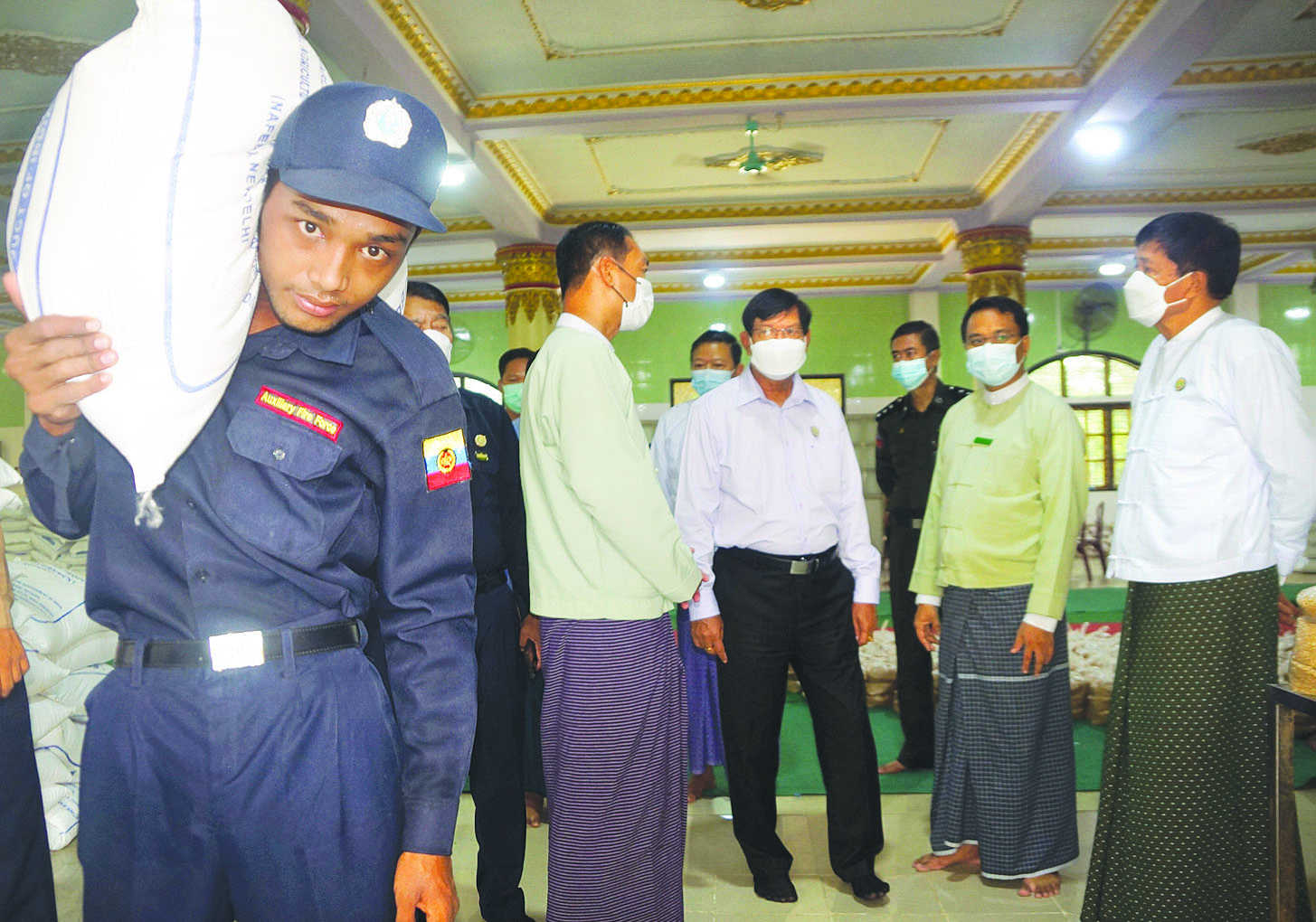 ရွှေပြည်သာမြို့နယ် ရွှေဘုန်း ရှိန်လမ်း သာသနာ့ဗိမာန်၌ အမှတ် (၅)ရပ်ကွက်ရှိ အိမ်ထောင်စု ၉၀၀ အတွက် ၂၄ ပြည်ပါ ဆန် အိတ် ၉၀၀၊ ၅၀ ကီလိုပါ ဂျုံအိတ် ၂၃ အိတ်တို့ကို လည်းကောင်း၊ အမှတ်(၆) ရပ်ကွက်ရှိ အိမ်ထောင်စု ၉၀၀ အတွက် ၂၄ ပြည်ပါ ဆန် အိတ် ၉၀၀၊ ၅၀ ကီလိုပါ ဂျုံအိတ် ၂၃ အိတ်ကို လည်းကောင်း ပြည်သူများ၏ လက်ဝယ် အရောက် ထောက်ပံ့ပေးအပ် လျက်ရှိရာ တိုင်းဒေသကြီး ဝန်ကြီးချုပ်နှင့် ဝန်ကြီးများက သွားရောက် ကြည့်ရှုအားပေးပြီး ပြည်သူများအား ကူညီဆောင်ရွက် ပေးနေသည့် စေတနာ့ဝန်ထမ်း များကို တွေ့ဆုံကာ ကျေးဇူးတင် စကား ပြောကြားသည်။