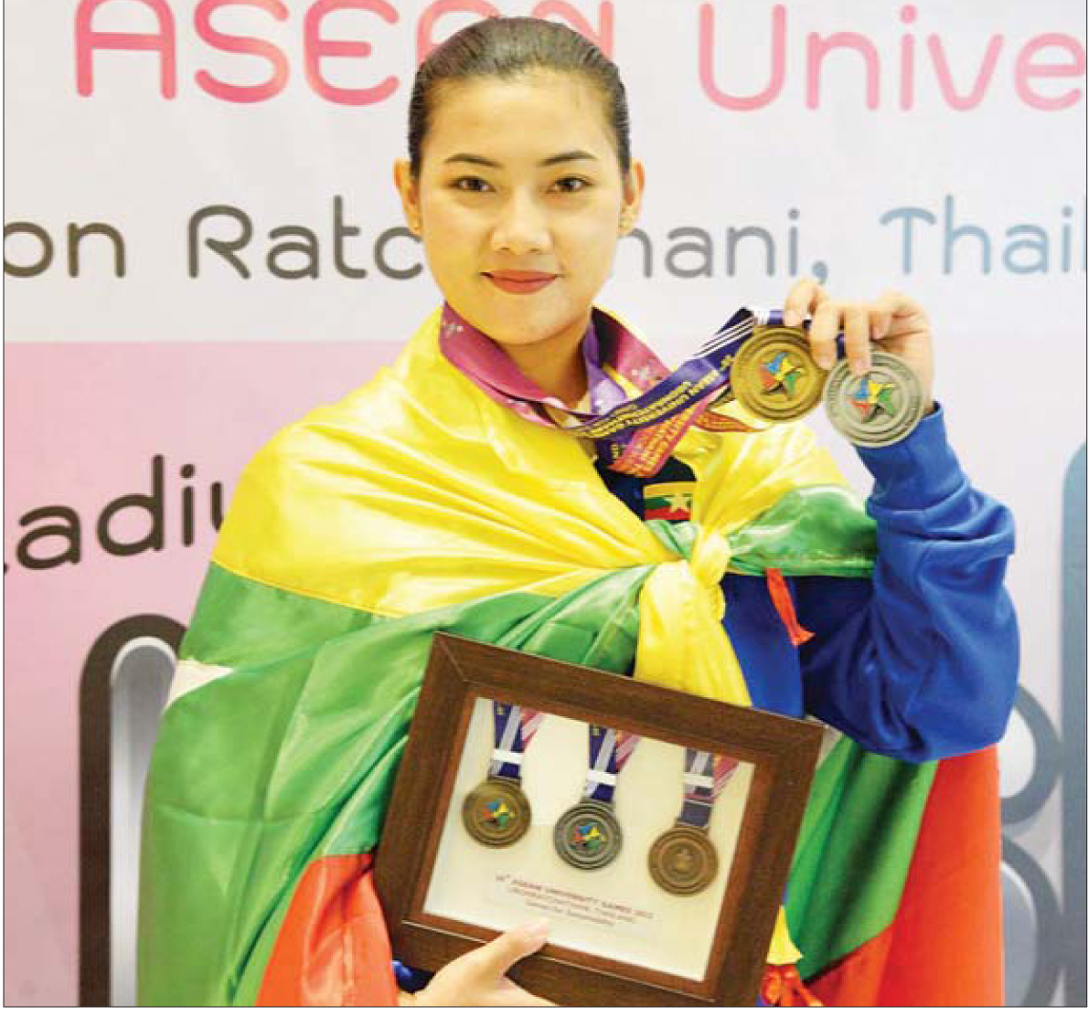 အကြိမ် (၂၀)မြောက် အာဆီယံတက္ကသိုလ်များအားကစားပြိုင်ပွဲ တက္ကသိုလ်ဝူရှူးအားကစားအဖွဲ့မှ မအေးသစ္စာမြင့် ရွှေတံဆိပ်ဆွတ်ခူး
