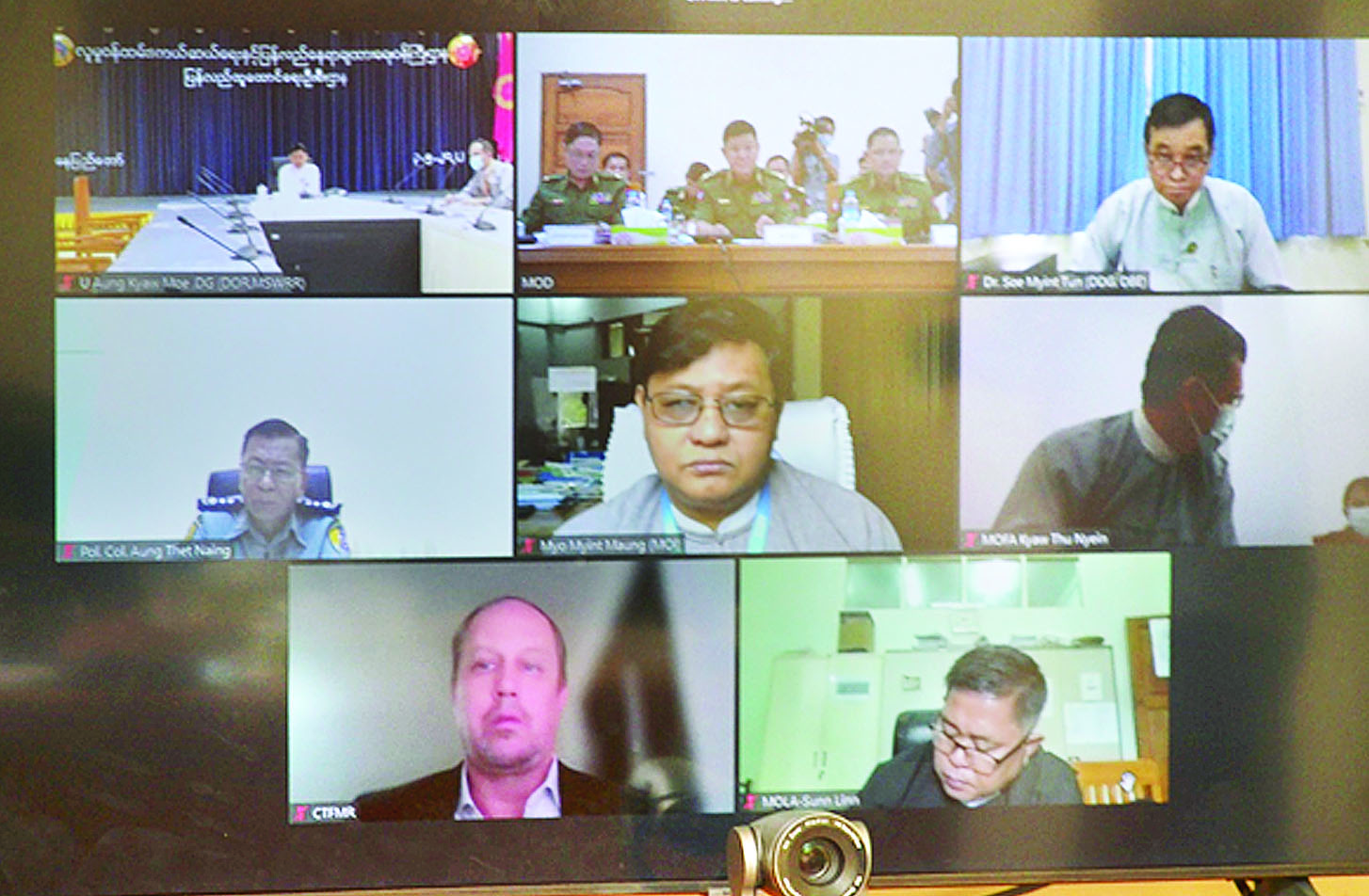 အရွယ်မရောက်သေးသူ ကလေး သူငယ်များအား စစ်မှုထမ်းဆောင် ခြင်းမှ ကာကွယ်တားဆီး ထိန်းသိမ်းရေးကော်မတီနှင့် The Country Task Force on Moni-toring and Reporting - CTFMR တို့၏ ညှိနှိုင်းအစည်းအဝေးကို ယနေ့နံနက်ပိုင်းတွင် ကာကွယ် ရေးဝန်ကြီးဌာန ပြည်ထောင်စု ဝန်ကြီးရုံး အစည်းအဝေးခန်းမ၌ Video Conferencing စနစ်ဖြင့် ကျင်းပသည်။