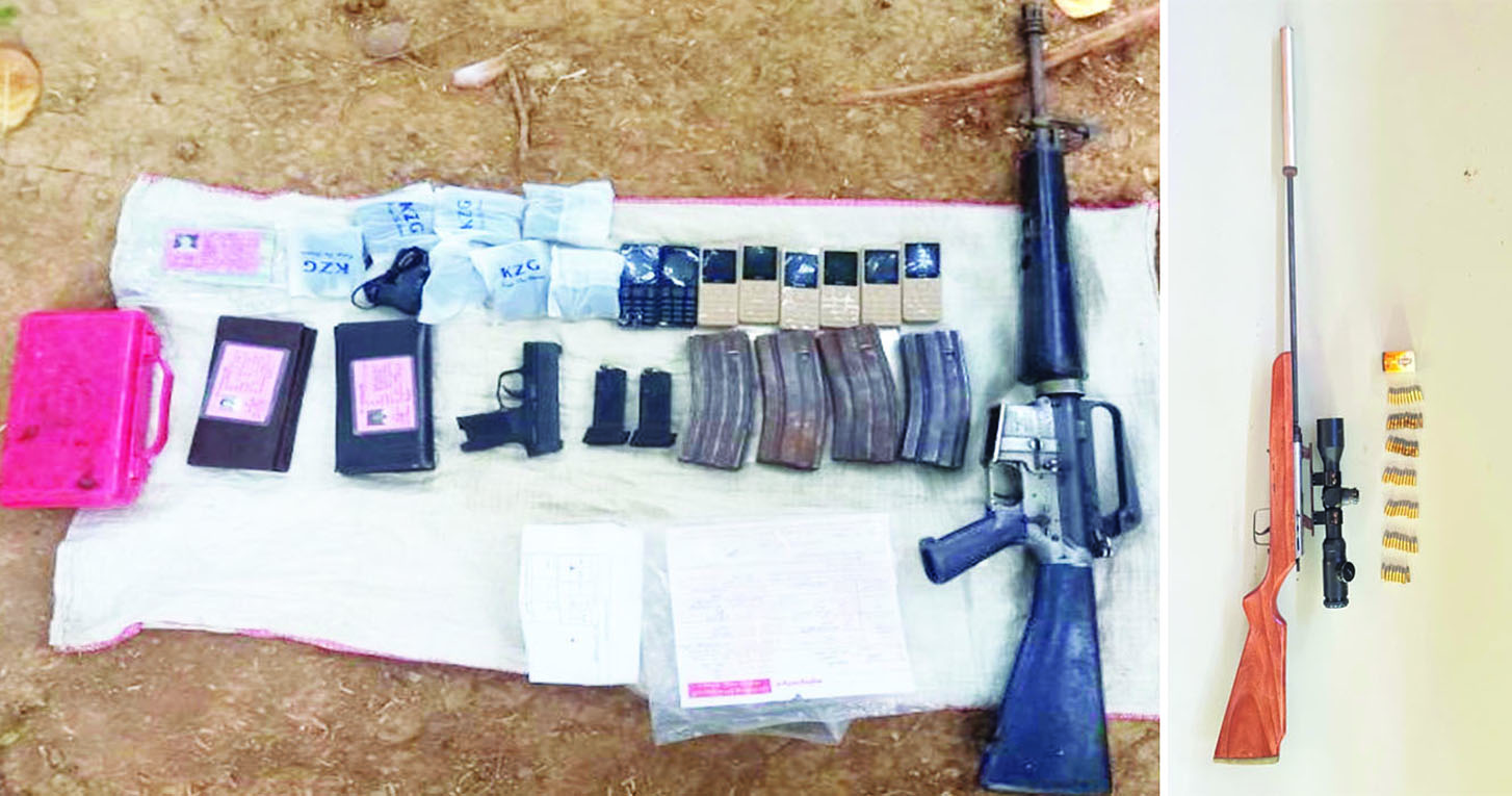 ဖြစ်စဉ်တွင်   တရားခံ ကျား  ၁၄ ဦး၊ မ  နှစ်ဦး ပေါင်း ၁၆ ဦး တို့ကို  လက်နက်မျိုးစုံ လေးလက်၊ ကျည်အိမ်မျိုးစုံ ရှစ်ခု၊ ကျည်မျိုးစုံ ၂၀၃    တောင့်၊   ရှေ့ထွက်မိုင်း သုံးလုံး၊ ဒီတိုနေတာ ၅၅ ချောင်း၊ ယမ်းထုပ်   ငါးထုပ်၊   လက်လုပ် သေနတ်ပြုလုပ်ရန် ဆင်ထားသည့် ပိုက် သုံးခု၊ Laptop တစ်လုံး၊ သံလိုက်အိမ်မြှောင် နှစ်ခု၊ ဖောက်ခွဲ ရေး ဆက်စပ်ပစ္စည်းများနှင့်အတူ ဖမ်းဆီးရမိခဲ့သည်။