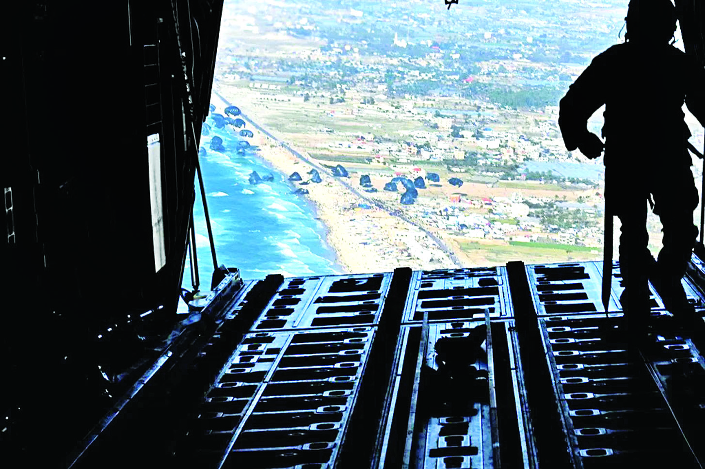 ဂါဇာကမ်းမြောင်သို့ ဝေဟင်မှတစ်ဆင့် ထောက်ပံ့ ကူညီမှုများ ချထားပေးသော်လည်း စားနပ်ရိက္ခာနှင့် ဆေးဝါးပြတ်တောက်မှုအတွက် လုံလောက်မှုမရှိ ကြောင်း သိရသည်။ ယာယီရေပေါ်ဆိပ်ခံတံတား အသုံးပြုနိုင်သော ရေကြောင်းစင်္ကြံလမ်းကြောင်း တစ်ခု ထူထောင်မည်ဟု အမေရိကန်တာဝန်ရှိသူ များက ထုတ်ပြန်ကြေညာခဲ့သည်။ ဥရောပသမဂ္ဂ သည် အဆိုပါအစီအစဉ်သို့ ပူးပေါင်းပါဝင်သည့် မိတ်ဖက်များထဲမှ တစ်ခုအပါအဝင်ဖြစ်သည်။