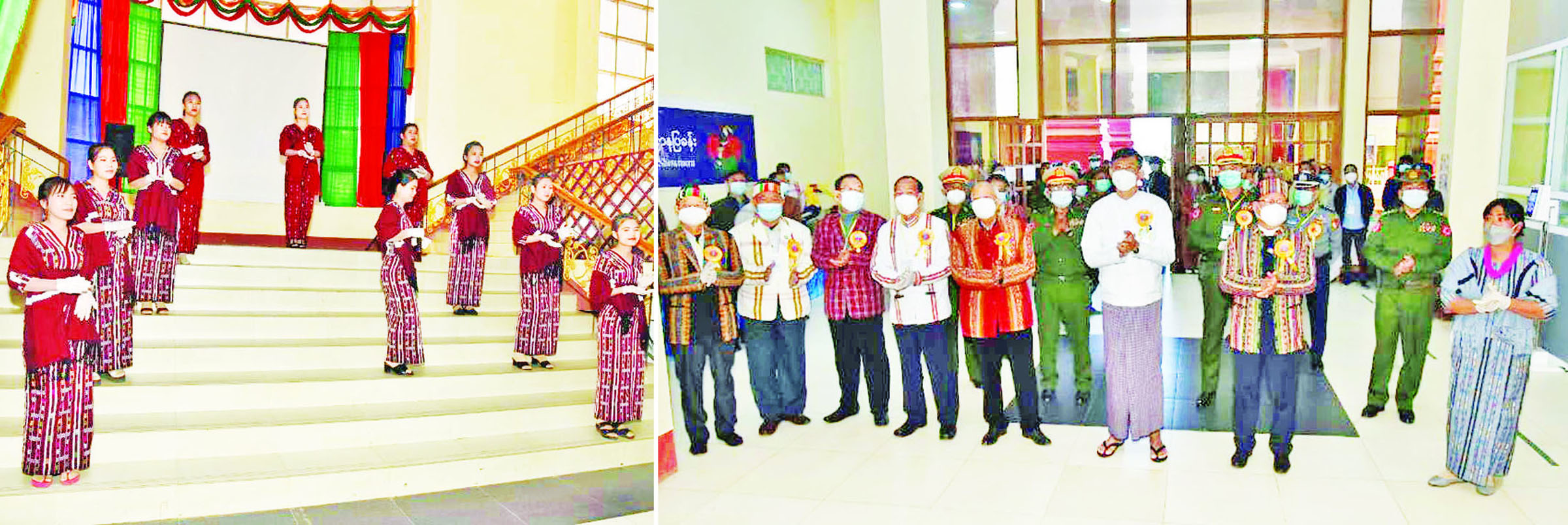 ထို့နောက် နိုင်ငံတော်စီမံအုပ်ချုပ်ရေးကောင်စီအဖွဲ့ဝင်များ၊ ပြည်နယ်ဝန်ကြီးချုပ်နှင့် တာဝန်ရှိသူ များသည် ချင်းရိုးရာယဉ်ကျေးမှုအဖွဲ့များ၏ ရိုးရာ အကများဖြင့် ကပြဖျော်ဖြေမှုကို ကြည့်ရှုအားပေးပြီး သာသနာရေးနှင့် ယဉ်ကျေးမှုဝန်ကြီးဌာနပြခန်းကို လှည့်လည်ကြည့်ရှုခဲ့ကြောင်း သတင်းရရှိသည်။