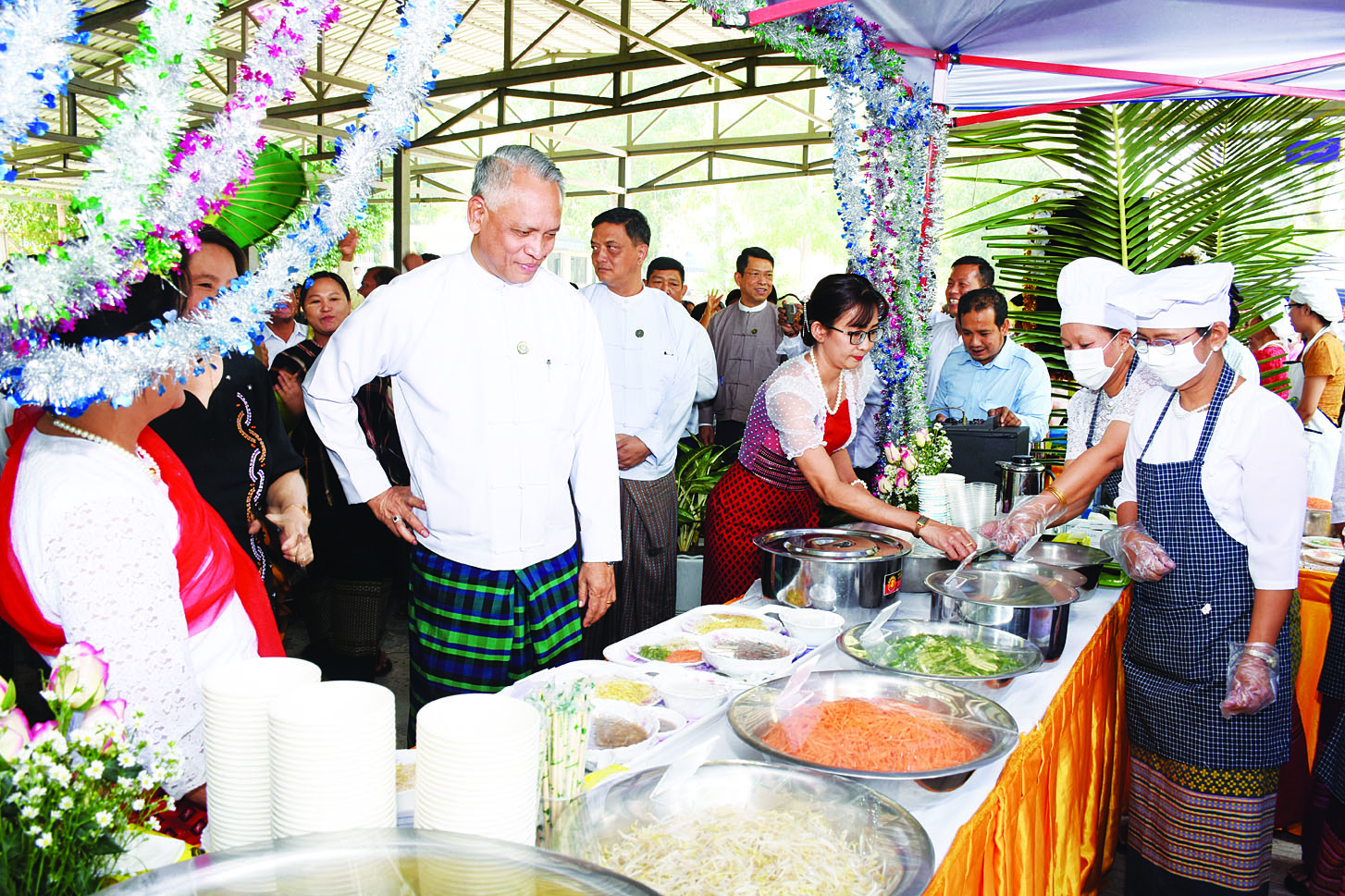 အခမ်းအနားတွင် ဝန်ကြီးရုံးနှင့် ဦးစီးဌာနများမှ ဝန်ထမ်းများက တိုင်းရင်းသားရိုးရာ အစားအစာ မျိုးစုံကို ဌာနအလိုက် တပျော်တပါး ချက်ပြုတ် ပြင်ဆင်ကြပြီး ဝန်ထမ်းများအား ဧည့်ခံကျွေးမွေး ကြသည်။