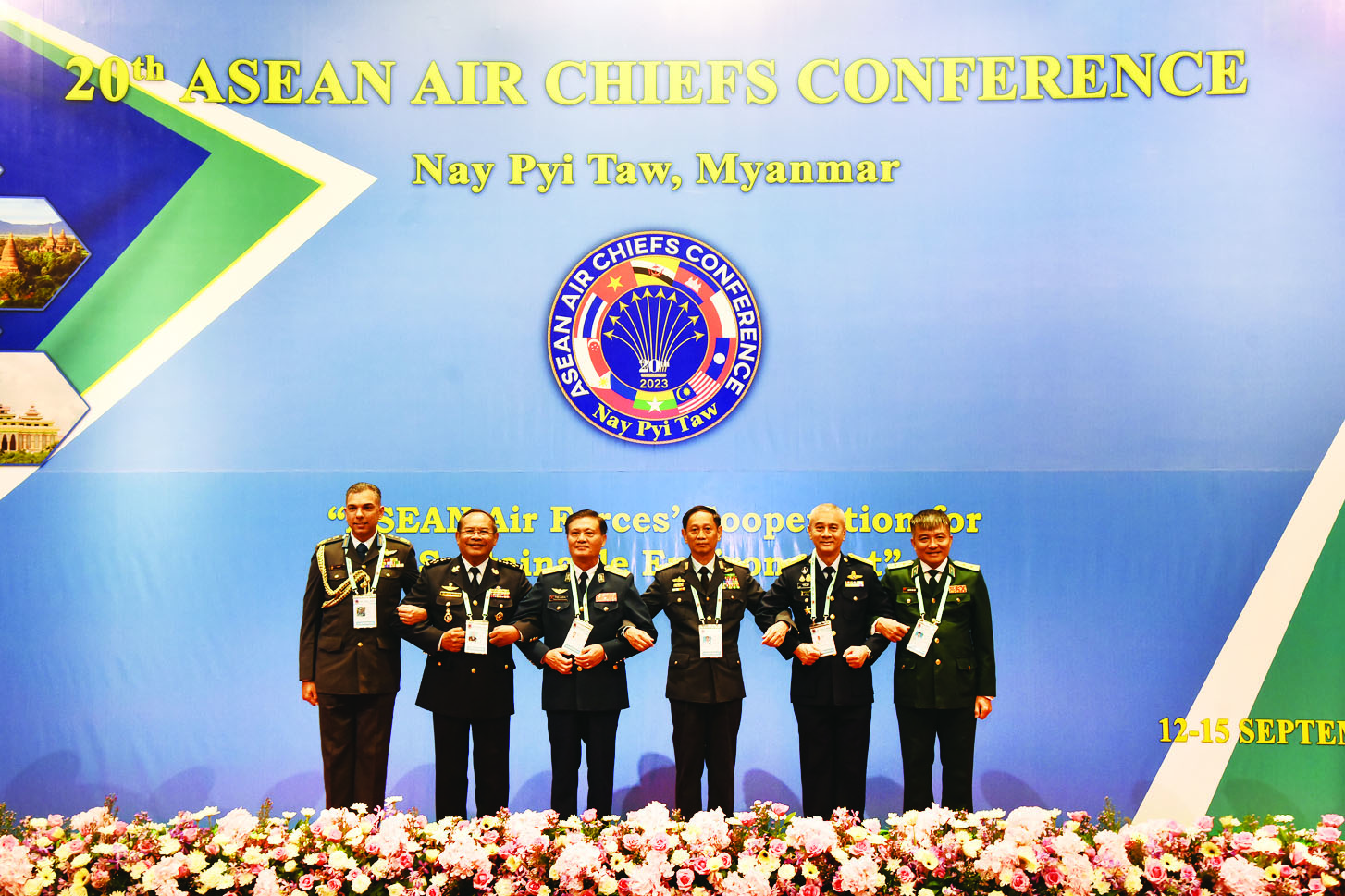 မြန်မာနိုင်ငံ၌ အိမ်ရှင်အဖြစ် လက်ခံ ကျင်းပသည့် အကြိမ် (၂၀) မြောက် အာဆီယံ လေတပ်ဦးစီးချုပ်များအစည်း အဝေး 20th ASEAN Air Chiefs Con-ference (20th AACC ) သို့ တက်ရောက်ရန် ဘရူနိုင်းနိုင်ငံ လေတပ်ဦးစီးချုပ် Brig. Gen. (U) Dato Seri Pahlawan Moham-mad Sharif Bin Dato Paduka Haji Ibrahim ဦးဆောင်သော ကိုယ်စားလှယ် အဖွဲ့၊ ကမ္ဘောဒီးယားနိုင်ငံ လေတပ်ဦးစီး ချုပ် Gen. Soeung Samnang ဦးဆောင် သောကိုယ်စားလှယ်အဖွဲ့၊ လာအိုနိုင်ငံ လေတပ်ဦးစီးချုပ် Brig. Gen. Khamlek Sengphachanh ဦးဆောင်သော ကိုယ်စား လှယ်အဖွဲ့၊ ထိုင်းနိုင်ငံ လေတပ်ဦးစီးချုပ် Air Chief Marshal Alongkorn Vannarot ဦးဆောင်သော ကိုယ်စားလှယ်အဖွဲ့နှင့် ဗီယက်နမ်နိုင်ငံ လေတပ်ဦးစီးချုပ် Lt. Gen. Nguyen Van Hien ဦးဆောင်သောကိုယ်စားလှယ်အဖွဲ့တို့သည် ယမန်နေ့ နံနက်ပိုင်းနှင့် ညနေပိုင်းတို့တွင် နေပြည် တော်သို့ ရောက်ရှိကြရာ တပ်မတော်(လေ)မှ အရာရှိကြီးများနှင့် တာဝန်ရှိသူများက နေပြည်တော်လေဆိပ်၌ ကြိုဆိုနှုတ်ဆက် ခဲ့ကြသည်။