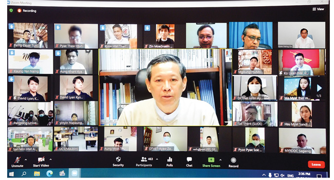 အမျိုးသားပညာရေးမဟာဗျူဟာစီမံကိန်း (၂၀၂၁-၂၀၃၀) ပြုစုရေးအတွက် ကျောင်းသားသမဂ္ဂများ၊ ကျောင်းသား ကျောင်းသူများနှင့် ညှိနှိုင်းအစည်းအဝေးကို ယနေ့နံနက် ၉ နာရီတွင် နေပြည်တော်ရှိ ပညာရေးဝန်ကြီးဌာန ရုံးအမှတ် (၁၃)မှ ဗီဒီယိုကွန်ဖရင့်စနစ်ဖြင့် ကျင်းပသည်။