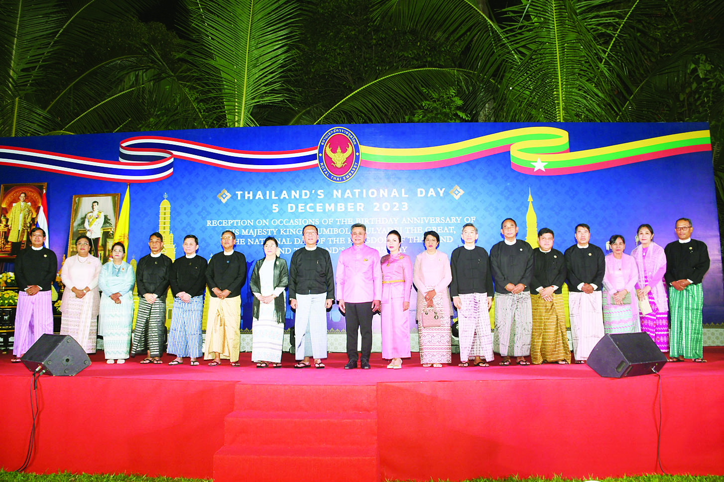 ထိုင်းနိုင်ငံ ဘုရင်မင်းမြတ် ဘူမိဘော အဒူလျာဒက်ဂျ်၏ မွေးနေ့၊ ထိုင်းနိုင်ငံ၏ အမျိုးသား နေ့နှင့် Thailand's Father's Day အထိမ်းအမှတ် အခမ်းအနား ကို ယနေ့ ညနေ ၆ နာရီတွင် ရန်ကုန်မြို့ ဒဂုံမြို့နယ် ပြည်လမ်း အမှတ် (၉၄) ရှိ ထိုင်းသံအမတ် ကြီး၏ နေအိမ်ခြံဝင်း၌ ကျင်းပရာ ဒုတိယဝန်ကြီးချုပ်နှင့် စီမံကိန်း နှင့် ဘဏ္ဍာရေးဝန်ကြီးဌာန ပြည်ထောင်စုဝန်ကြီး ဦးဝင်းရှိန် နှင့် ဇနီးတို့ တက်ရောက်ကြ သည်။