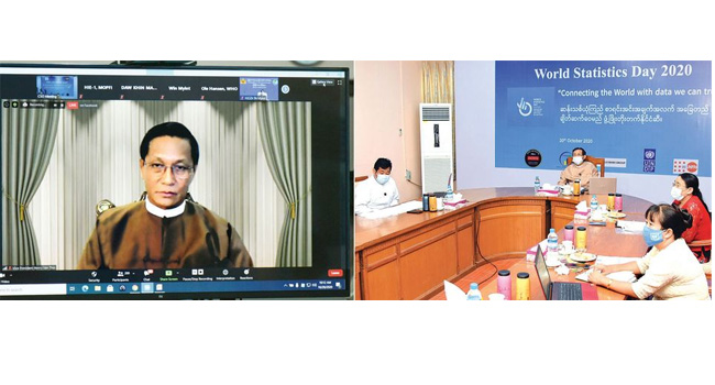 ၂၀၂၀ ပြည့်နှစ် ကမ္ဘာ့စာရင်းအင်းနေ့ (World Statistics Day – 2020) အခမ်းအနား (Virtual Event) ကို ယနေ့ နံနက် ၁၀ နာရီတွင် နေပြည်တော်ရှိ စီမံကိန်း၊ ဘဏ္ဍာရေး နှင့် စက်မှုဝန်ကြီးဌာန၊ ရုံးအမှတ်-၃၂၌ ကျင်းပရာ စာရင်းအင်းအချက်အလက် မှန်ကန်ရေးနှင့် အရည်အသွေးပြည့်ဝ ရေး ဗဟိုကော်မတီဥက္ကဋ္ဌ ဒုတိယ သမ္မတ ဦးဟင်နရီဗန်ထီးယူ Video Conferencing စနစ်ဖြင့် တက်ရောက် အမှာစကား ပြောကြားသည်။