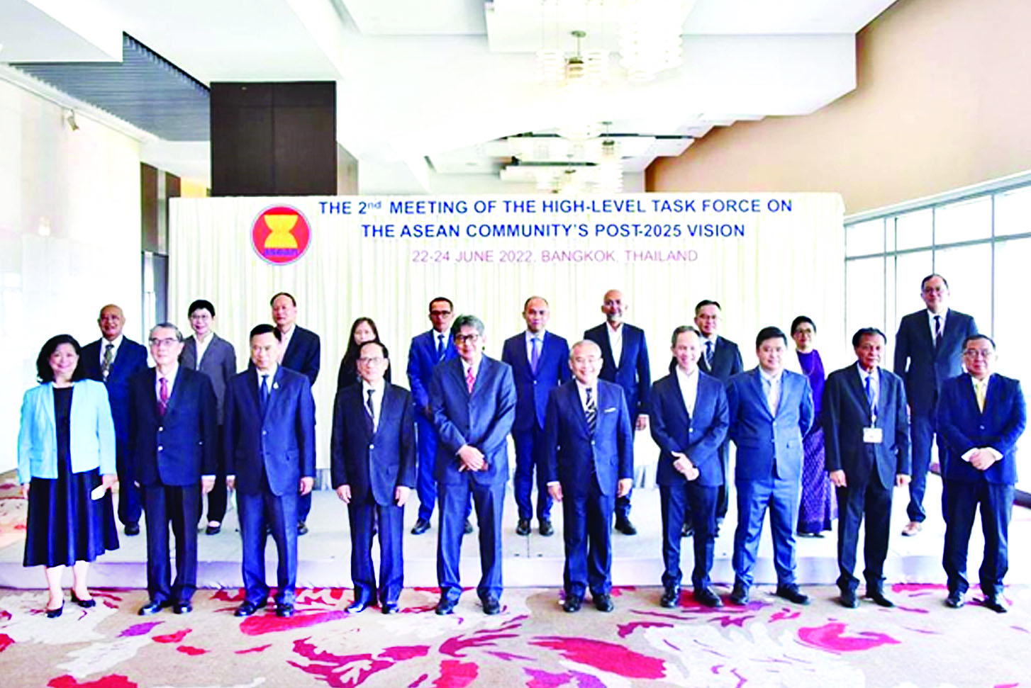 ထိုင်းနိုင်ငံ ဗန်ကောက်မြို့၌ ဇွန် ၂၃ ရက်မှ ၂၄ ရက် အထိ ကျင်းပသည့် အာဆီယံအသိုက်အဝန်း ၂၀၂၅ အလွန် မျှော်မှန်းချက်ရေးဆွဲရေးဆိုင်ရာ အဆင့်မြင့် လုပ်ငန်းအဖွဲ့အစည်းအဝေးသို့ မြန်မာနိုင်ငံ၏ အဆင့်မြင့်လုပ်ငန်းအဖွဲ့ဝင်၊ ရင်းနှီမြှုပ်နှံမှုနှင့် နိုင်ငံခြား စီးပွားဆက်သွယ်ရေးဝန်ကြီးဌာန ဒုတိယဝန်ကြီး ဦးသန်းအောင်ကျော် ပါဝင်တက်ရောက်သည်။