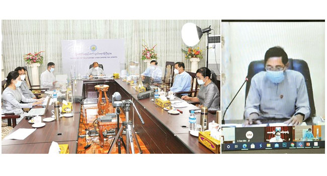 e-Government အကောင်အထည်ဖော်ရေးလုပ်ငန်းကော်မတီ၏ ပဉ္စမအကြိမ် လုပ်ငန်းညှိနှိုင်းအစည်းအဝေးကို ယနေ့ မွန်းလွဲ ၂ နာရီတွင် Video Conferencing စနစ်ဖြင့် ကျင်းပသည်။