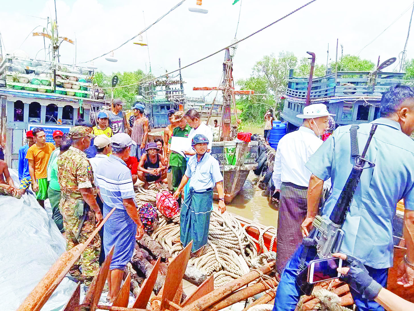 မွန်ပြည်နယ် သံဖြူဇရပ်မြို့နယ် ကျိုက္ခမီမြို့၌ ပင်လယ်ပြင်သို့ ငါးဖမ်း ထွက်မည့် စက်လှေများအား စစ်ဆေးခြင်းလုပ်ငန်းကို ဇွန် ၃၀ ရက်က ကျိုက္ခမီမြို့ အောင်သုခရပ်ကွက် လှေဆိပ်၌ ဆောင်ရွက်သည်။