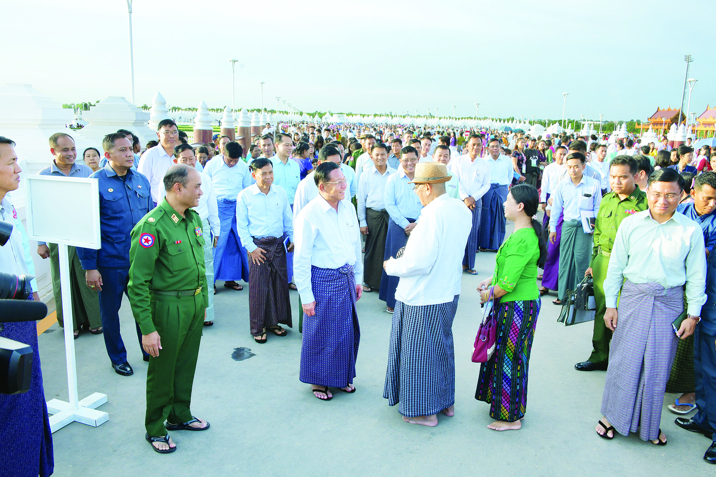 အစည်းအဝေးသို့ ဦးဆောင်ဘုရားဒါယကာ နိုင်ငံတော်စီမံအုပ်ချုပ်ရေးကောင်စီဥက္ကဋ္ဌ နိုင်ငံတော် ဝန်ကြီးချုပ် ဗိုလ်ချုပ်မှူးကြီး မင်းအောင်လှိုင်၊ နိုင်ငံတော်စီမံအုပ်ချုပ်ရေး ကောင်စီဥက္ကဋ္ဌ၏ အကြံ ပေးပုဂ္ဂိုလ် ဒုတိယဗိုလ်ချုပ်ကြီး ညိုစော၊ ဆောက်လုပ် ရေးဝန်ကြီးဌာန ပြည်ထောင်စုဝန်ကြီး ဦးမျိုးသန့်၊ စွမ်းအင်ဝန်ကြီးဌာန ပြည်ထောင်စုဝန်ကြီး ဦးကိုကို လွင်၊ ကာကွယ်ရေးဦးစီးချုပ်ရုံး(ကြည်း)မှ ဒုတိယ ဗိုလ်ချုပ်ကြီး ကျော်စွာလင်း၊ ဒုတိယဗိုလ်ချုပ်ကြီး ကံမြင့်သန်းနှင့် တပ်မတော်အရာရှိကြီးများ၊ နေပြည် တော်တိုင်း စစ်ဌာနချုပ်တိုင်းမှူး၊ သာသနာရေးနှင့် ယဉ်ကျေးမှုဝန်ကြီးဌာန ဒုတိယဝန်ကြီးနှင့် တာဝန် ရှိသူများ တက်ရောက်ကြသည်။