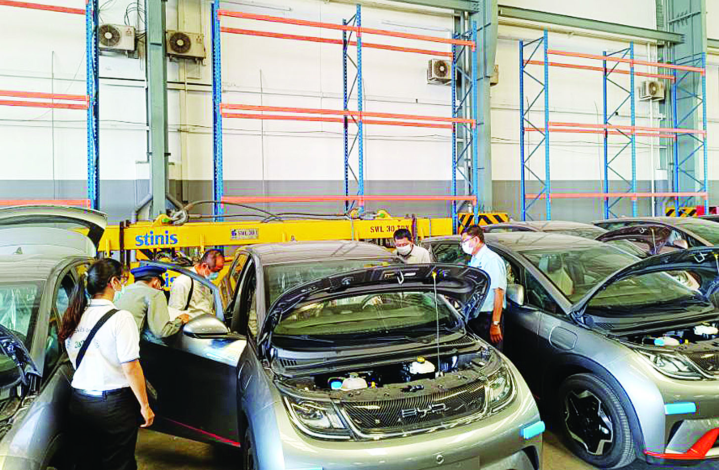အမျိုးသားအဆင့် လျှပ်စစ်သုံးယာဉ်နှင့် ဆက်စပ်လုပ်ငန်းများ ဖွံ့ဖြိုးတိုးတက်ရေးဦးဆောင်ကော်မတီ၏ ခွင့်ပြုချက်ဖြင့် Chin Dwin Shan ConstructionCo., Ltd. မှ တင်သွင်းလာသော BYD Dolphin အမျိုးအစား လျှပ်စစ်သုံးမော်တော်ယာဉ် ကိုးစီးသည် ရန်ကုန်ဆိပ်ကမ်း သို့ ရောက်ရှိလာပါသဖြင့် ယနေ့တွင် လုပ်ထုံးလုပ်နည်းနှင့်အညီ ထုတ်ယူခွင့်ပြုခဲ့ပါကြောင်းနှင့် အဆိုပါ လျှပ်စစ်သုံးမော်တော်ယာဉ်များ တင်သွင်းမှုအတွက် အကောက်ခွန်ကင်းလွတ်ခွင့်ပြုထားကြောင်း သိရ သည်။