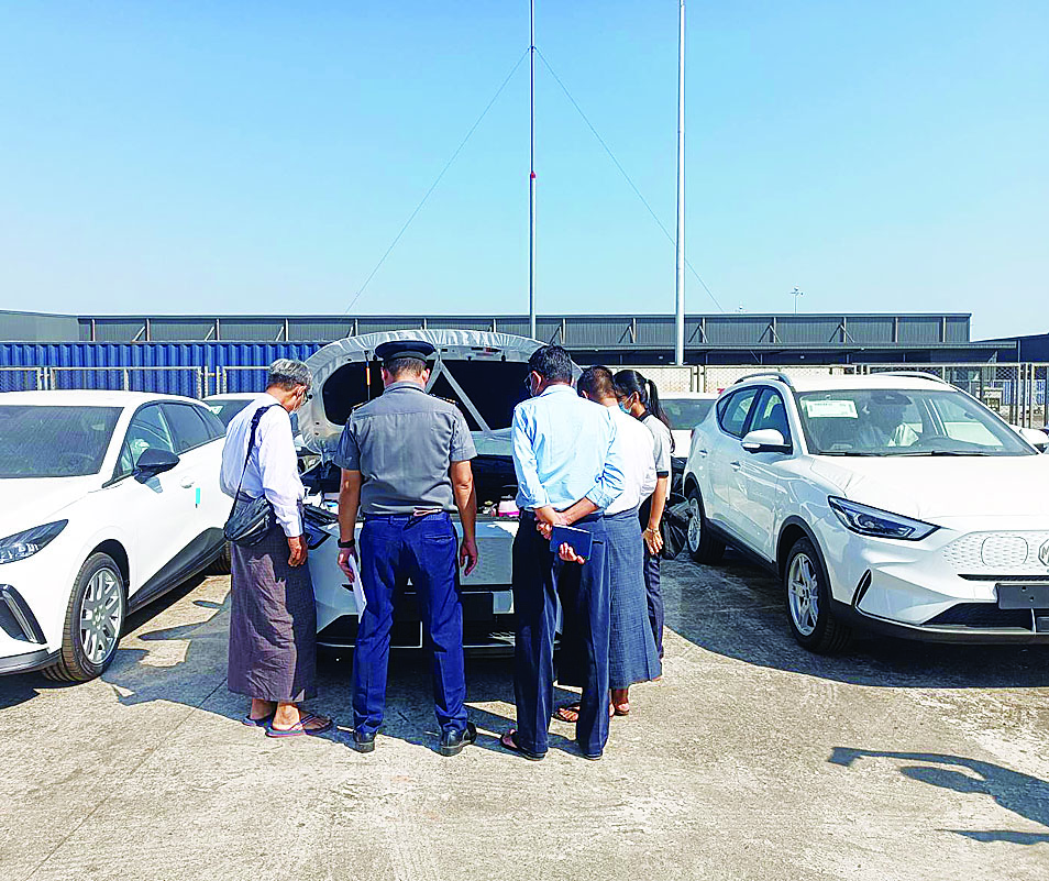 အမျိုးသားအဆင့်လျှပ်စစ်သုံးယာဉ်နှင့် ဆက်စပ်လုပ်ငန်းများ ဖွံ့ဖြိုး တိုးတက်ရေးဦးဆောင်ကော်မတီ၏ ခွင့်ပြုချက်ဖြင့် Innogen Myanmar Co., Ltd. မှ တင်သွင်းလာသော တရုတ်နိုင်ငံထုတ် GAC Toyota BZ4X အမျိုးအစားလျှပ်စစ်သုံးမော်တော်ယာဉ်များ၊ N.P.K Motors Co., Ltd.မှ တင်သွင်းလာသော တရုတ်နိုင်ငံထုတ် MG, MGZS EV နှင့်MG, MG4 (Mulan) အမျိုးအစား လျှပ်စစ်သုံးမော်တော်ယာဉ်များသည် ရန်ကုန် ဆိပ်ကမ်းသို့ရောက်ရှိလာရာ ယနေ့တွင် လုပ်ထုံးလုပ်နည်းနှင့်အညီ ထုတ်ယူခွင့်ပြုခဲ့ကြောင်း သိရသည်။