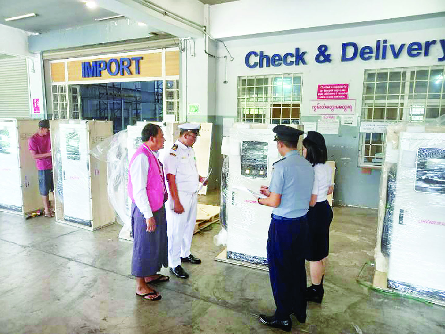 အမျိုးသားအဆင့် လျှပ်စစ်သုံး ယာဉ်နှင့် ဆက်စပ်လုပ်ငန်းများ ဖွံ့ဖြိုးတိုးတက်ရေး ဦးဆောင် ကော်မတီ၏ ခွင့်ပြုချက်ဖြင့် Essential Motor Co.,Ltd. မှ တင်သွင်းလာသည့် LINCHR အမျိုးအစား၊ လျှပ်စစ်သုံးယာဉ် အားသွင်းစက် (EV Charger) 60 KW ငါးခုသည် ရန်ကုန်အပြည်ပြည် ဆိုင်ရာလေဆိပ်သို့ ရောက်ရှိ လာသဖြင့် ယနေ့တွင် လုပ်ထုံး လုပ်နည်းနှင့်အညီ ထုတ်ယူခွင့်ပြု ခဲ့ပါကြောင်းနှင့် အဆိုပါအားသွင်း စက်များ တင်သွင်းမှုအတွက် အကောက်ခွန် ကင်းလွတ်ခွင့်ပြု ထားကြောင်း သတင်းရရှိသည်။