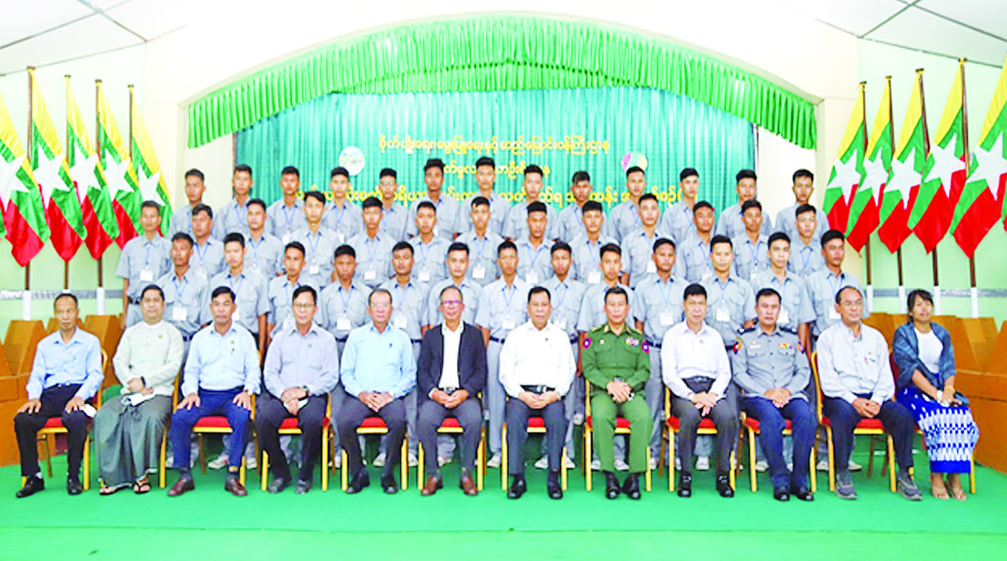 ထို့နောက် ပြည်ထောင်စုဝန်ကြီးနှင့် တိုင်းဒေသ ကြီးဝန်ကြီးချုပ် ဦးမောင်ကို တို့သည် သင်တန်းသား များနှင့်အတူ စုပေါင်းဓာတ်ပုံရိုက်ကြပြီး သင်တန်းတွင် အသုံးပြုမည့် သင်ထောက်ကူပစ္စည်းများကို ကြည့်ရှု စစ်ဆေးသည်။