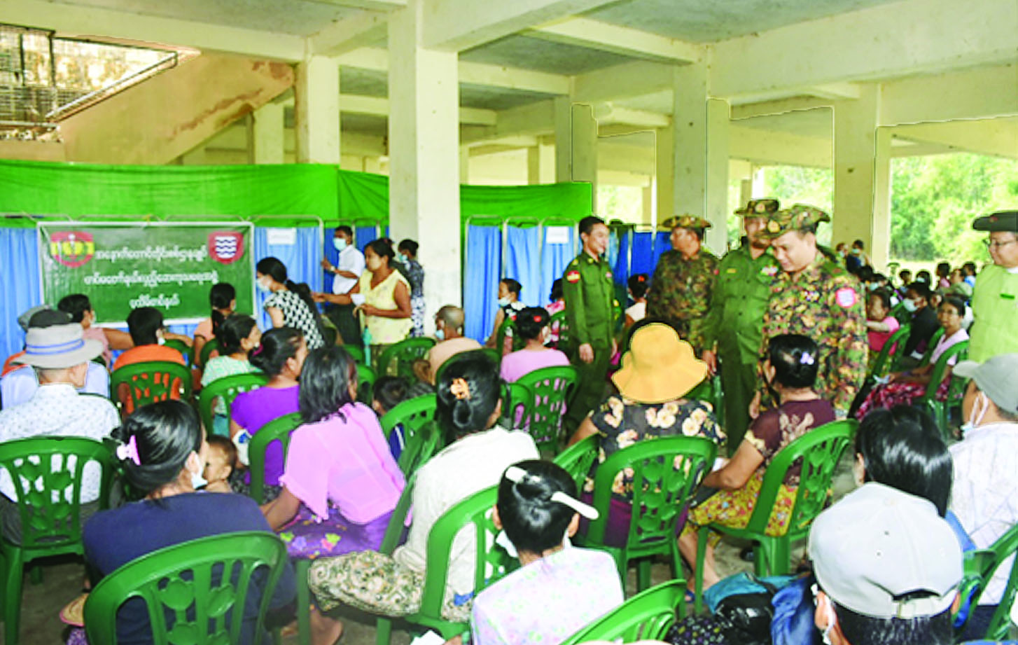 ထိုသို့ ဆောင်ရွက်ပေးရာတွင် နယ်လှည့်ဆေးကုသ ရေးအဖွဲ့က ခွဲစိတ်ကုသမှုဆိုင်ရာရောဂါ၊ ဆီးချို သွေးချို ရောဂါ၊ အရိုး/အကြော ရောဂါ၊ မျက်စိရောဂါ၊ သွားနှင့် ခံတွင်းရောဂါ၊ ကလေးရောဂါနှင့် အထွေထွေရောဂါ တို့နှင့်ပတ်သက်၍ ဒေသခံပြည်သူ ၃၂၄ ဦး တို့ကို လိုအပ်သည့် ကျန်းမာရေးစစ်ဆေးကုသပေးခြင်းများ ဆောင်ရွက်ပေးသည်။ ယင်းသို့ ဆောင်ရွက်ပေးနေ မှုများကို တိုင်းမှူး ဗိုလ်မှူးချုပ် ဝေလင်းနှင့် တာဝန် ရှိသူများက သွားရောက်ကြည့်ရှုအားပေးပြီး လိုအပ် သည်များ ညှိနှိုင်းဖြည့်ဆည်းဆောင်ရွက်ပေးခဲ့ ကြောင်း သတင်းရရှိသည်။