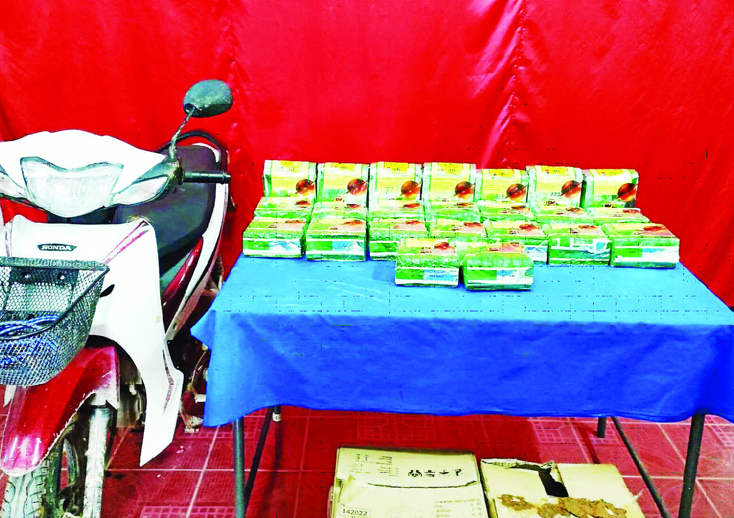 ထို့အတူ ယင်းနေ့ မွန်းလွဲ ၁ နာရီ ၁၅ မိနစ်တွင် တာချီလိတ် မြို့နယ် ဝမ်လုံးကျေးရွာအုပ်စု ဟွေရဲကျေးရွာအနီးတွင် အမျိုး သား တစ်ဦး (စိစစ်ဆဲ) မောင်းနှင် လာသည့် မော်တော်ဆိုင်ကယ်ကို စစ်ဆေးရန် ရပ်တန့်ခိုင်းစဉ် ၎င်းအမျိုးသားမှာ ဆိုင်ကယ်ကို လှဲချ၍ လမ်းဘေးရှိ လျှိုအတွင်းသို့ ထွက်ပြေးသွားသဖြင့် ငွေကျပ် သိန်း ၄၆၀၀ တန်ဖိုးရှိ အိုက်စ်များ သိမ်းဆည်းရမိပြီး (အပေါ်ပုံ) ဆိုင်ကယ်ခွကြားရှိ ကတ်ထူပုံးများ အတွင်းမှ အိုက်စ် ၂၃ ကီလို သိမ်းဆည်းရမိခဲ့သဖြင့် ၎င်းတို့ အား မူးယစ်ဆေးဝါးနှင့် စိတ်ကို ပြောင်းလဲစေသော ဆေးဝါးများ ဆိုင်ရာ ဥပဒေအရ အရေးယူထား ကြောင်း သိရသည်။
