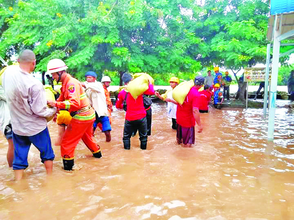 ရှမ်းပြည်နယ်(မြောက်ပိုင်း) သီပေါ မြို့နယ်၌ယမန်နေ့ညက မိုးအဆက် မပြတ် ရွာသွန်းမှုနှင့် တောင်ကျရေ များကြောင့်   ဒုဋ္ဌဝတီမြစ်ရေလျှံ ကာ   အနိမ့်ပိုင်းဒေသဖြစ်သည့် ဈေးရပ်ကွက်နှင့် ပန်းတိမ်တောင် ရပ် တို့တွင်  ရေကြီးရေလျှံမှုဖြစ်ကာ  အိမ်ထောင်စု ၂၄ စုတို့မှ ပြည်သူ များအား  ကယ်ဆယ်ရေးစခန်း အဖြစ် ဖွင့်လှစ်ထားသည့် မြို့လယ် ဓမ္မာရုံ    သာသနာ့ဗိမာန်တော်သို့ ပြောင်းရွှေ့ နေရာချထားပေးသည်။