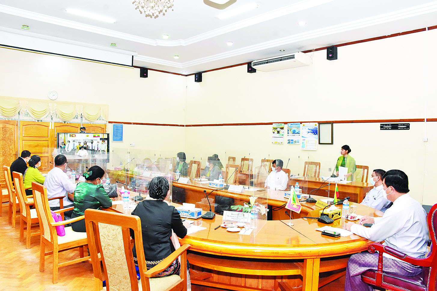 မြန်မာနိုင်ငံမှ သီရိလင်္ကာနိုင်ငံ သို့ G to G အစီအစဉ်ဖြင့် ဆန်တင်ပို့ ရောင်းချနိုင်ရေး အတွက် မြန်မာနိုင်ငံ စီးပွားရေး နှင့် ကူးသန်းရောင်းဝယ်ရေး ဝန်ကြီးဌာနနှင့် သီရိလင်္ကာနိုင်ငံ ကုန်သွယ်ရေး ဝန်ကြီးဌာနတို့ အကြား နှစ်နိုင်ငံသဘောတူစာချုပ် (Bilateral Agreement) လက်မှတ်ရေးထိုးခြင်း အခမ်း အနားကို ယနေ့ မွန်းလွဲ ၂ နာရီ ခွဲတွင် စီးပွားရေးနှင့် ကူးသန်း ရောင်းဝယ်ရေး ဝန်ကြီးဌာန အစည်းအဝေးခန်းမ၌ Virtual စနစ်ဖြင့် ကျင်းပရာ သီရိလင်္ကာ နိုင်ငံ ကုန်သွယ်ရေးဝန်ကြီး Dr. Bandula Gunawardhana နှင့် စီးပွားရေးနှင့် ကူးသန်းရောင်းဝယ် ရေးဝန်ကြီးဌာန ပြည်ထောင်စု ဝန်ကြီး ဒေါက်တာ ပွင့်ဆန်းတို့ တက်ရောက်ပြီး အမှာစကားများ ပြောကြားသည်။