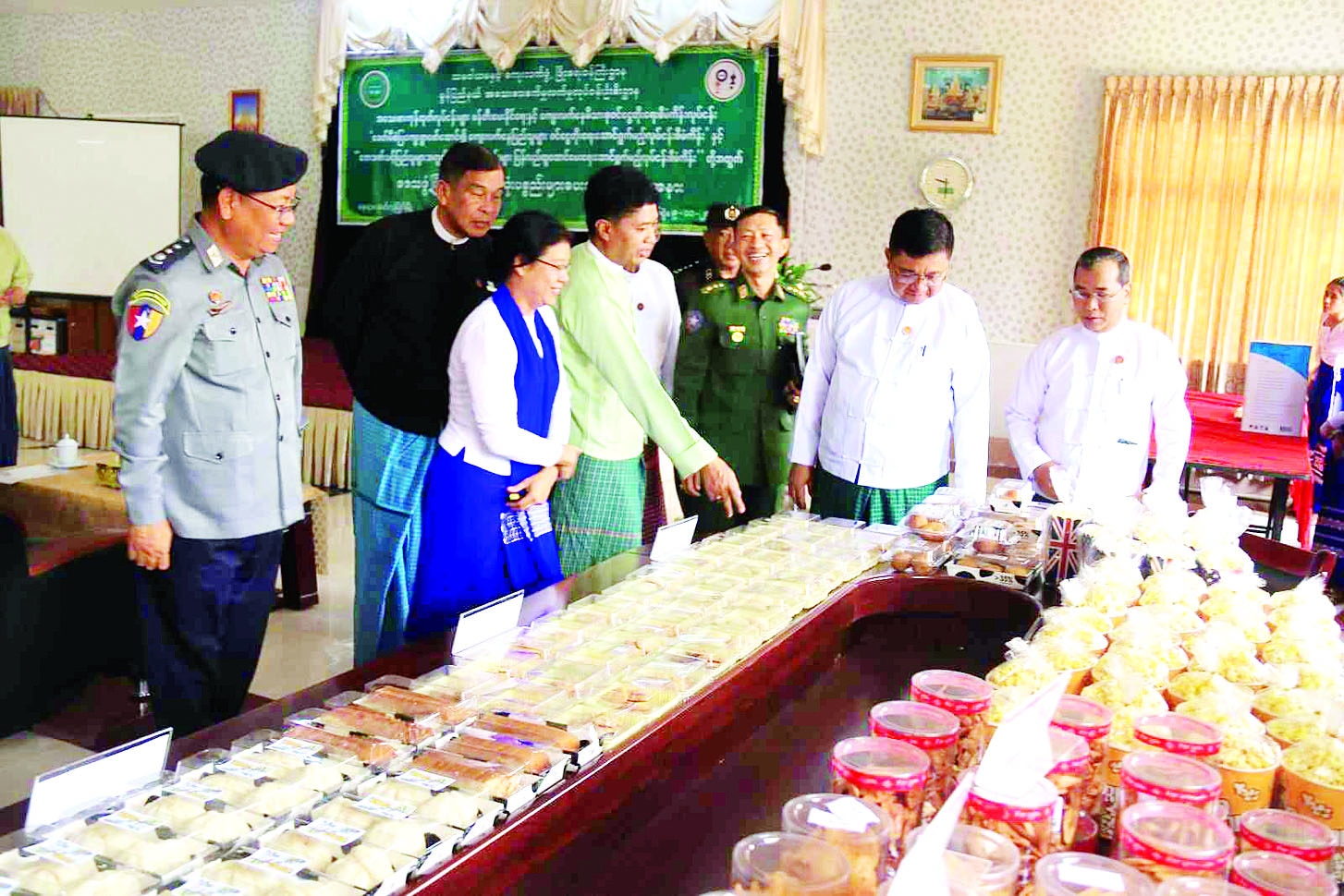 ယင်းနောက် အသေးစား ကုန်ထုတ်လုပ်ငန်း များ ဖန်တီးပေးနိုင်ရေးနှင့် မိသားစုဝင်ငွေတိုးရေး စီမံကိန်းလုပ်ငန်းအတွက် ဒေသဖွံ့ဖြိုးရေးလုပ်ငန်းသုံး ပစ္စည်းများအား ပြည်နယ်ဝန်ကြီးချုပ်နှင့် ပြည်နယ် ဝန်ကြီးများက သင်တန်းသား၊ သင်တန်းသူများ ထံပေးအပ်ပြီး ခန်းမအတွင်း ခင်းကျင်းပြသထားသော လုပ်ငန်းသုံးပစ္စည်းများအား လှည့်လည်ကြည့်ရှု အားပေးခဲ့ကြောင်း သိရသည်။