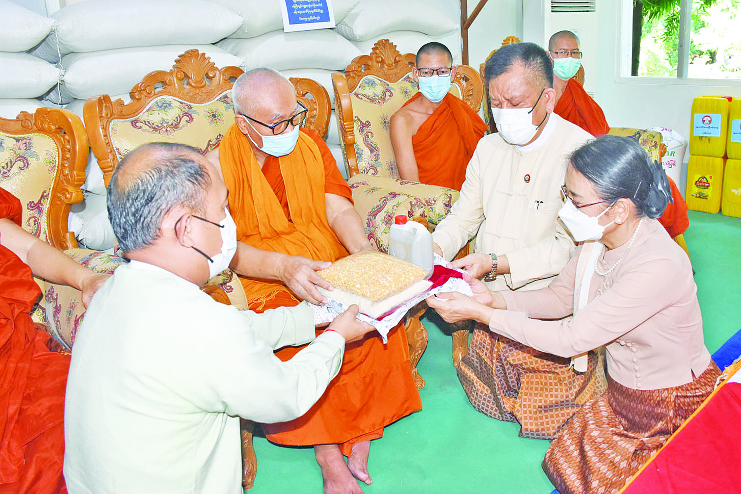 ယင်းနောက် တိုင်းဒေသကြီး ဝန်ကြီးချုပ်နှင့်ဇနီးနှင့်အဖွဲ့သည် ရဟန်း၊ သာမဏေ ၅၁၆ ပါးတို့အား ဆွမ်း၊ ဆွမ်းဟင်းများ လောင်းလှူ ကြပြီး ဖောင်တော်ဦးကျောင်း ဆရာတော် အမှူးပြုသော ဆရာတော်၊ သံဃာတော်များအား နေ့ဆွမ်းများ ဆက်ကပ်လှူဒါန်း သည်။
