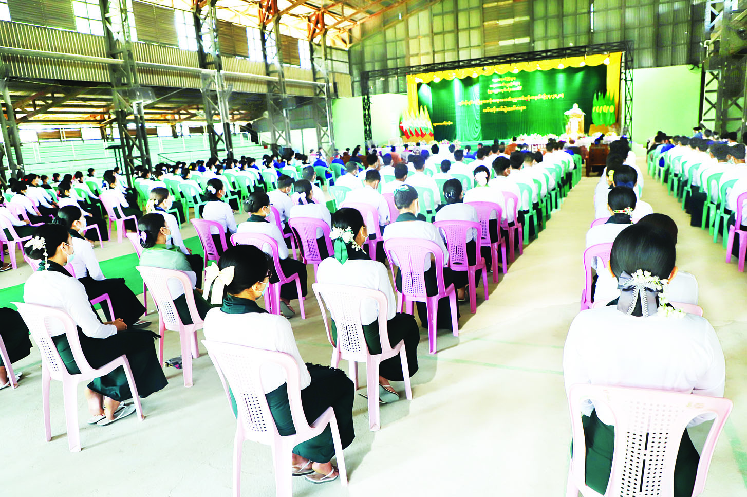 ရှေးဦးစွာ တိုင်းဒေသကြီးဝန်ကြီးချုပ်က နိုင်ငံ တော်အနေဖြင့် အခြေခံပညာကျောင်းများမှာ ဆရာ၊ ကျောင်းသား    အချိုးကောင်းမွန်တိုးတက်ရေးနှင့် ဆရာ  ဆရာမများ၏   သင်ကြားမှုအရည်အသွေး ပြည့်ဝစေရေးကို    ဦးစားပေးဆောင်ရွက်လျက်ရှိ ကြောင်း၊ မောင်တို့မယ်တို့အနေဖြင့် အရည်အသွေး ပြည့်ဝသည့် ဆရာတစ်ဦးဖြစ်ရန်အတွက် ဆရာအတတ် ပညာဆိုင်ရာ အသိပညာ၊ အတတ်ပညာများရရှိရန်နှင့်  ဝန်ထမ်းစည်းမျဉ်းစည်းကမ်းများကို သိရှိနားလည်စေ ရန် နိုင်ငံတော်မှ အကောင်အထည်ဖော် ဆောင်ရွက် နေသည့် သင်ရိုးသစ်များကို ထိရောက်စွာ အကောင် အထည်ဖော် သင်ကြားလေ့ကျင့်ပေးနိုင်ရန်  အရေး ကြီးကြောင်း ပြောကြားသည်။