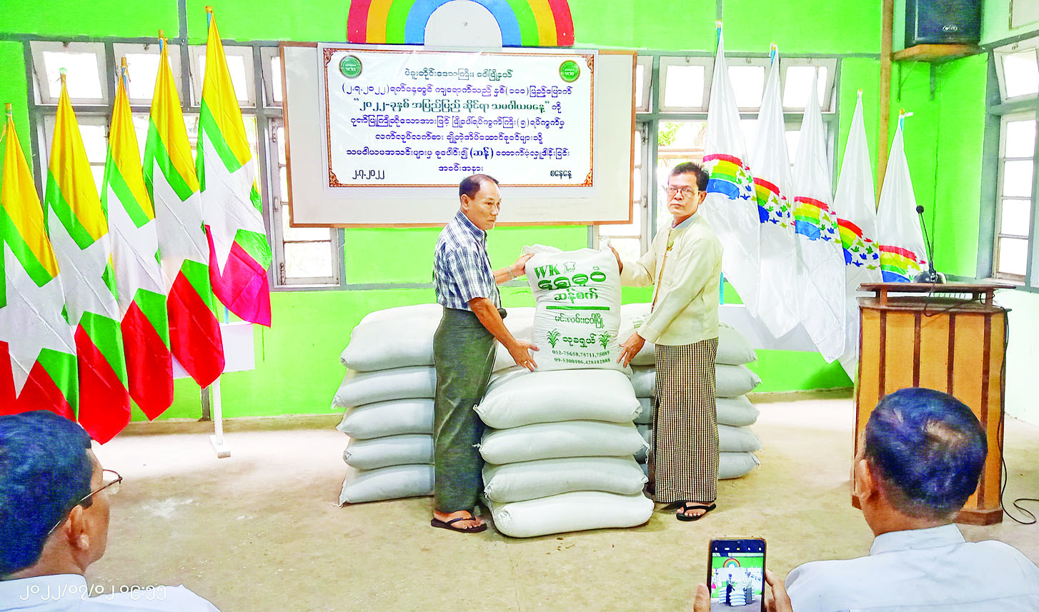 နှစ်(၁၀၀)ပြည့် အပြည်ပြည်ဆိုင်ရာသမဝါယမနေ့ကို ဂုဏ်ပြုသောအားဖြင့် လက်လုပ်လက်စားအိမ်ထောင်စုများအတွက် ဆန်များထောက်ပံ့လှူဒါန်း